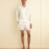 This style is inspired by 1980s rugby shorts from New Zealand. We reproduced the silhouette, with its short inseam and wide leg opening, in heavyweight cotton twill. The shorts are embroidered with a Bode logo.