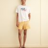 This polo is inspired by a rugby shirt from the 1980s. We reproduced the silhouette, with its open collar, for this style, which has three tonal stripes around one arm.