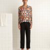 This shirt is inspired by a tablecloth from the 1910s-1930s. We reproduced the embroidered rose border, worked in terracotta-colored cross-stitching, for this style. The shirt is embroidered with “Bode” on the back.