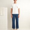 These pants are made from deadstock suiting wool and cut in a classic pajama pant silhouette. Hand-mending throughout.