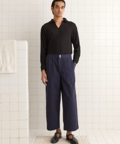 BODE Men’s Ready To Wear Wide Leg Snap Trousers – Navy