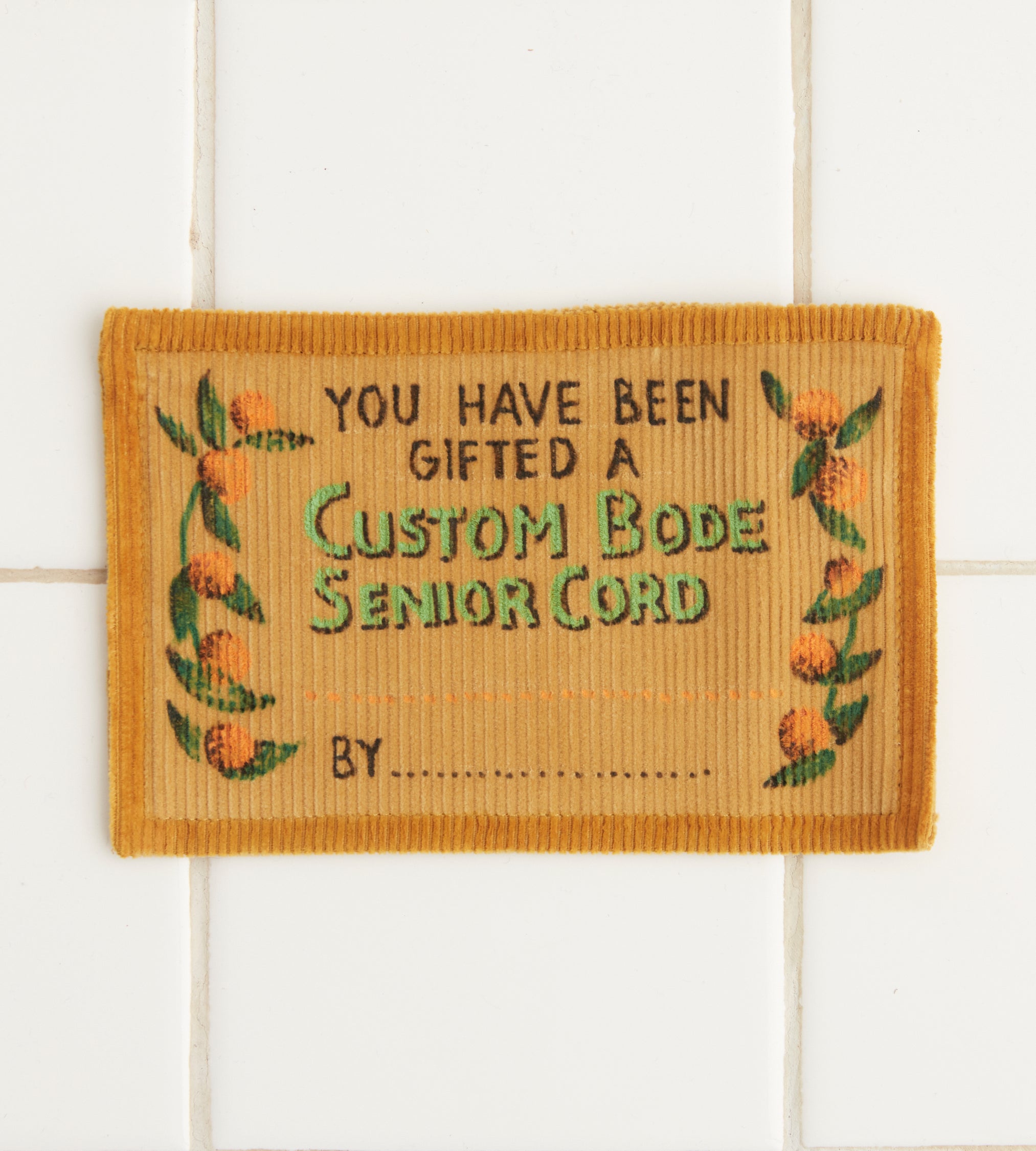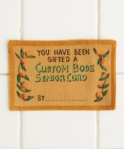 Our custom Senior Cord jackets are made from corn-colored British corduroy with hand-drawn illustrations in black or full-color. This technique is inspired by an early 20th-century collegiate tradition in which seniors illustrated their corduroys with personal motifs. Once purchased, we will email with a questionnaire and set up a phone call with our studio team to customize your jacket. Please allow 10-12 weeks from the time of your interview to complete the order.