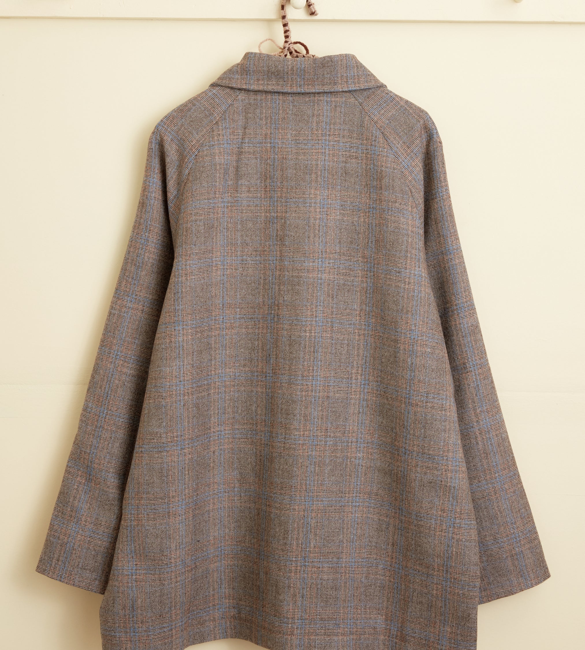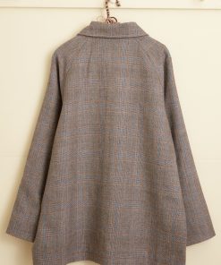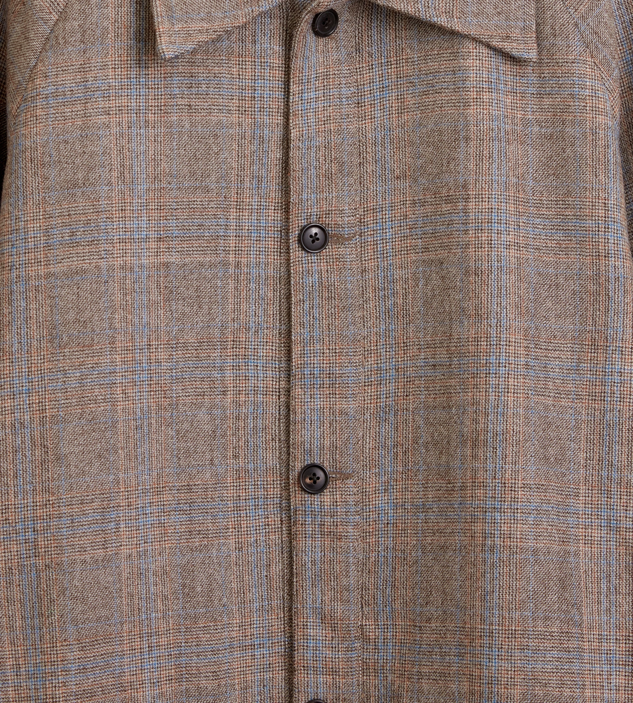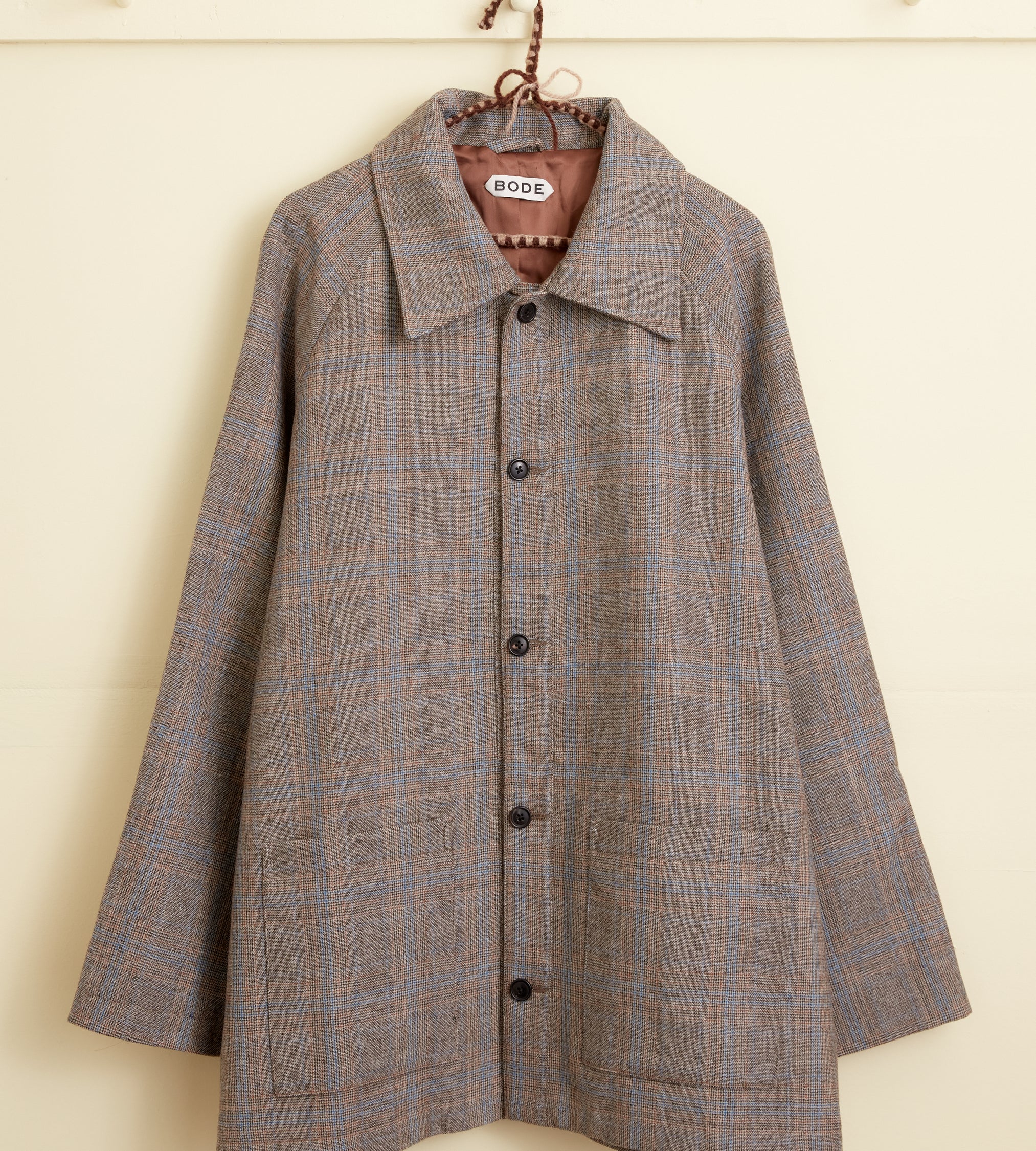 This jacket is made from deadstock wool sourced from a tailor in Buffalo, NY, who closed his doors in the 1970s. He imported all of his fabrics from the UK and Italy. They had been sitting in his storage unit until we purchased them sixty years later.