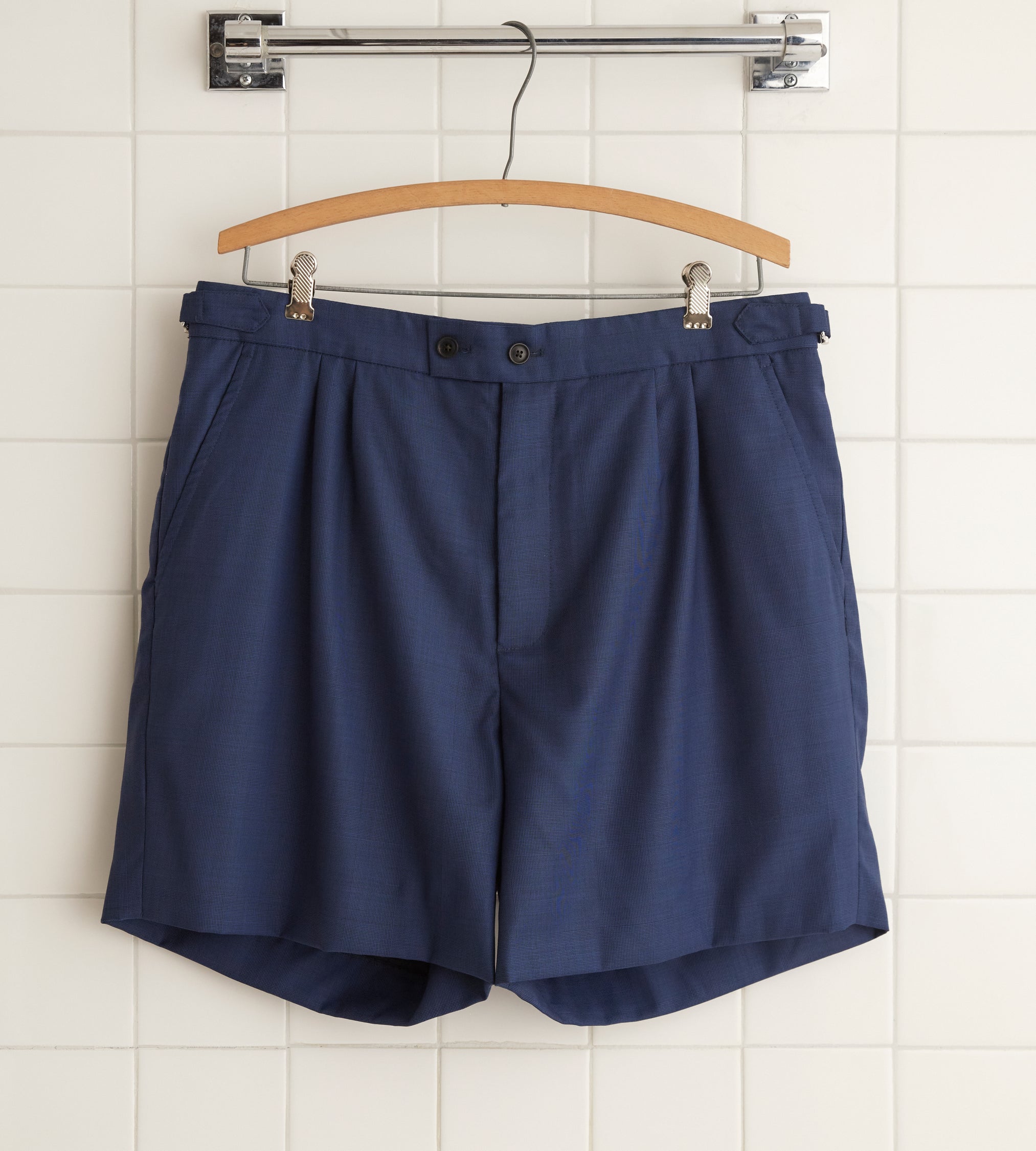 BODE Men’s One-of-a-kind Night Blue Wool Shorts – 34