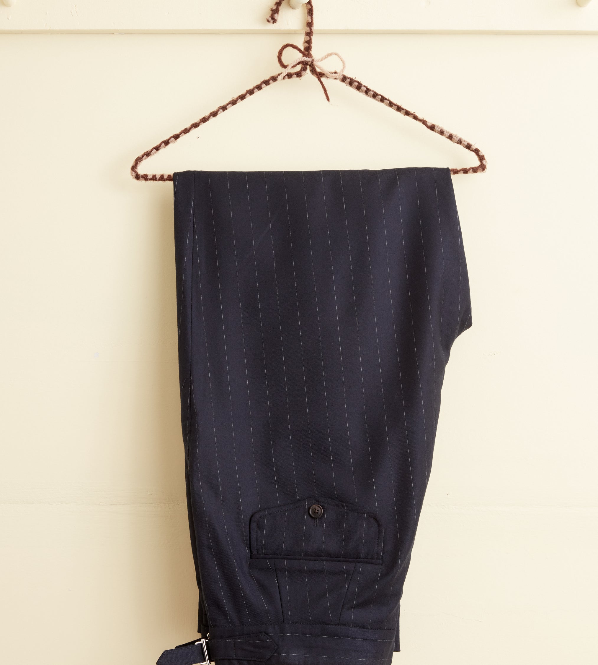 BODE Men’s One-of-a-kind Umbrose Pinstripe Trousers – 36 | Navy