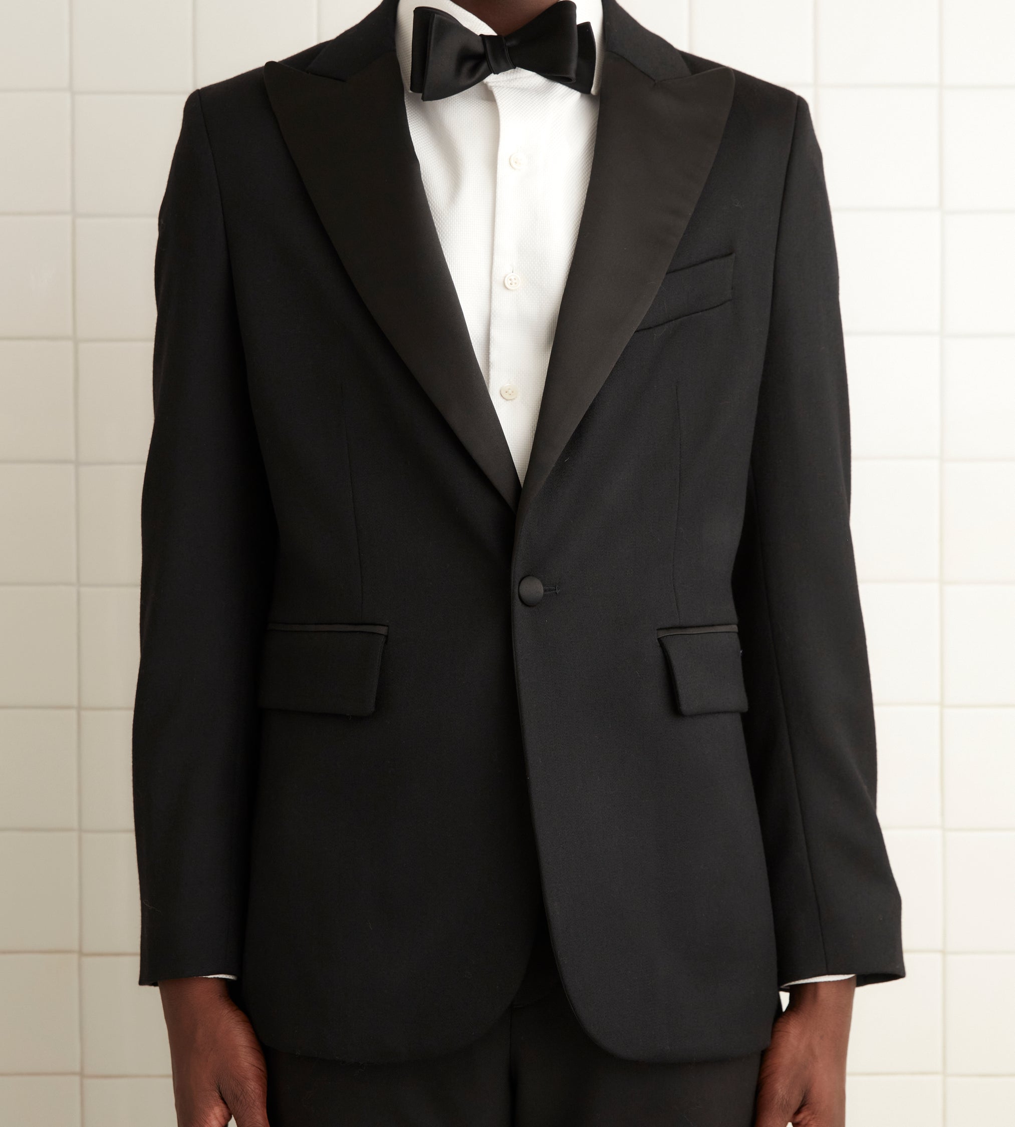 BODE Men’s Ready To Wear Barathea Peak Lapel Tuxedo Jacket | Black