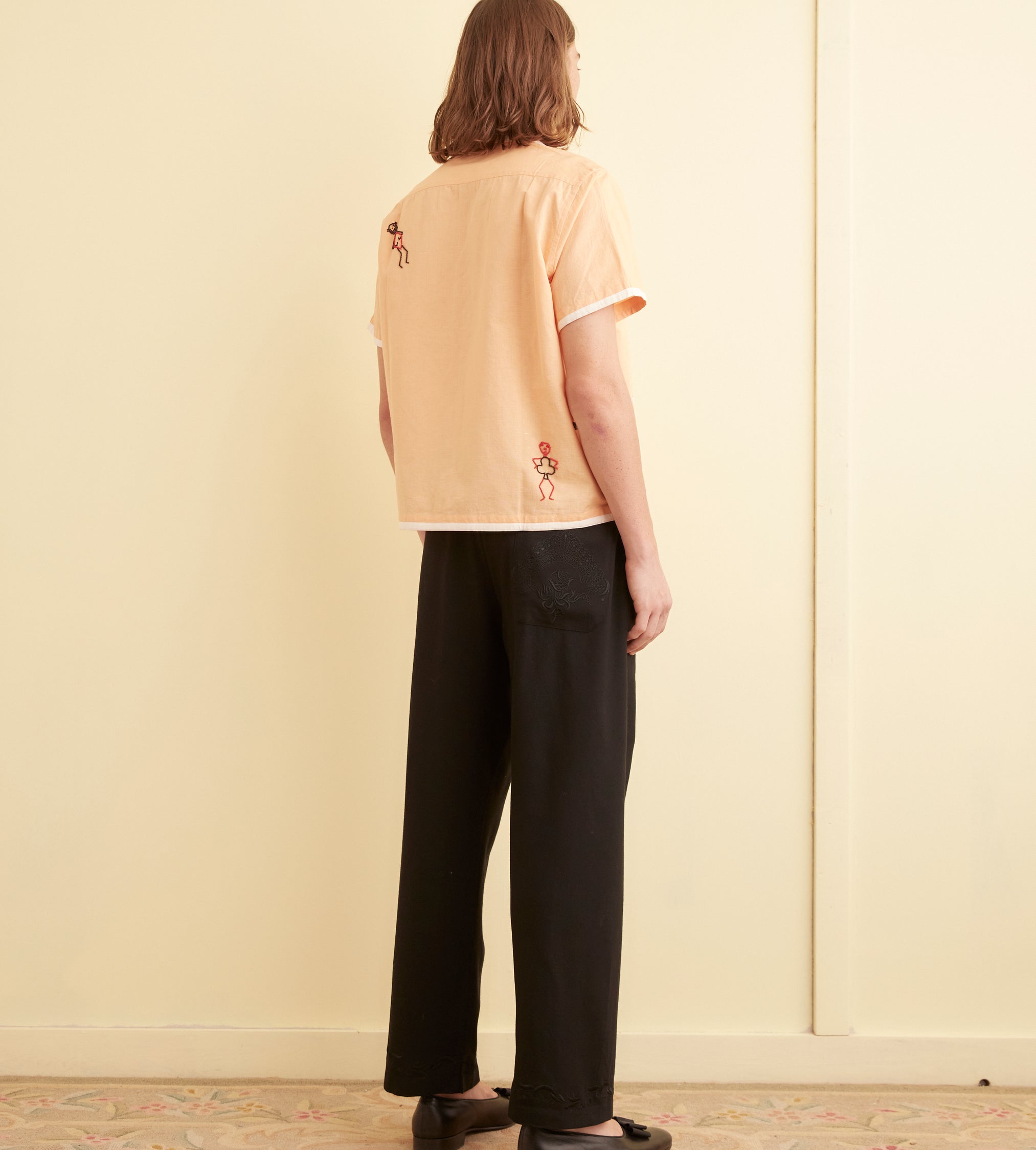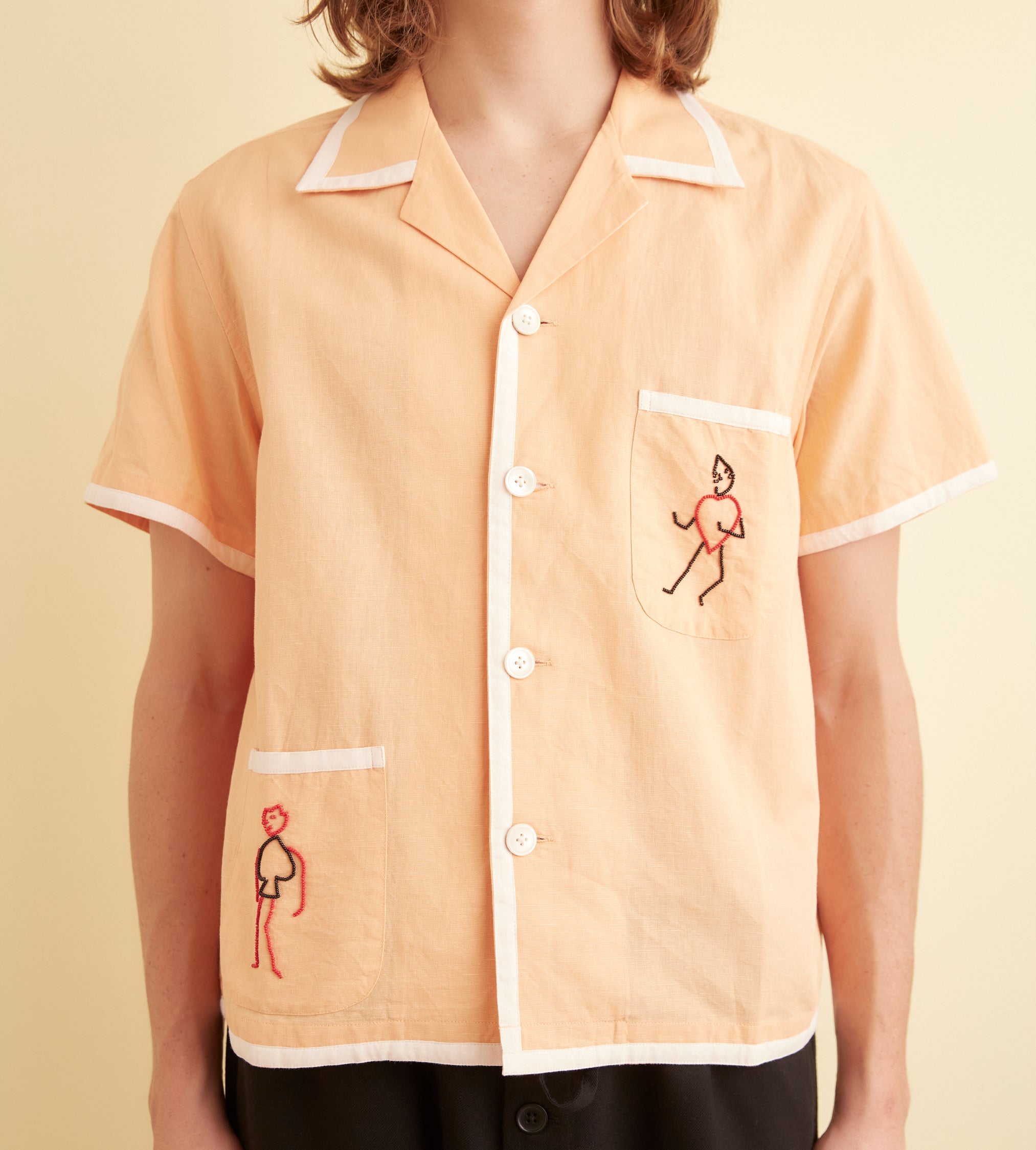 BODE Men’s Ready To Wear Beaded Blackjack Short Sleeve Shirt | Orange