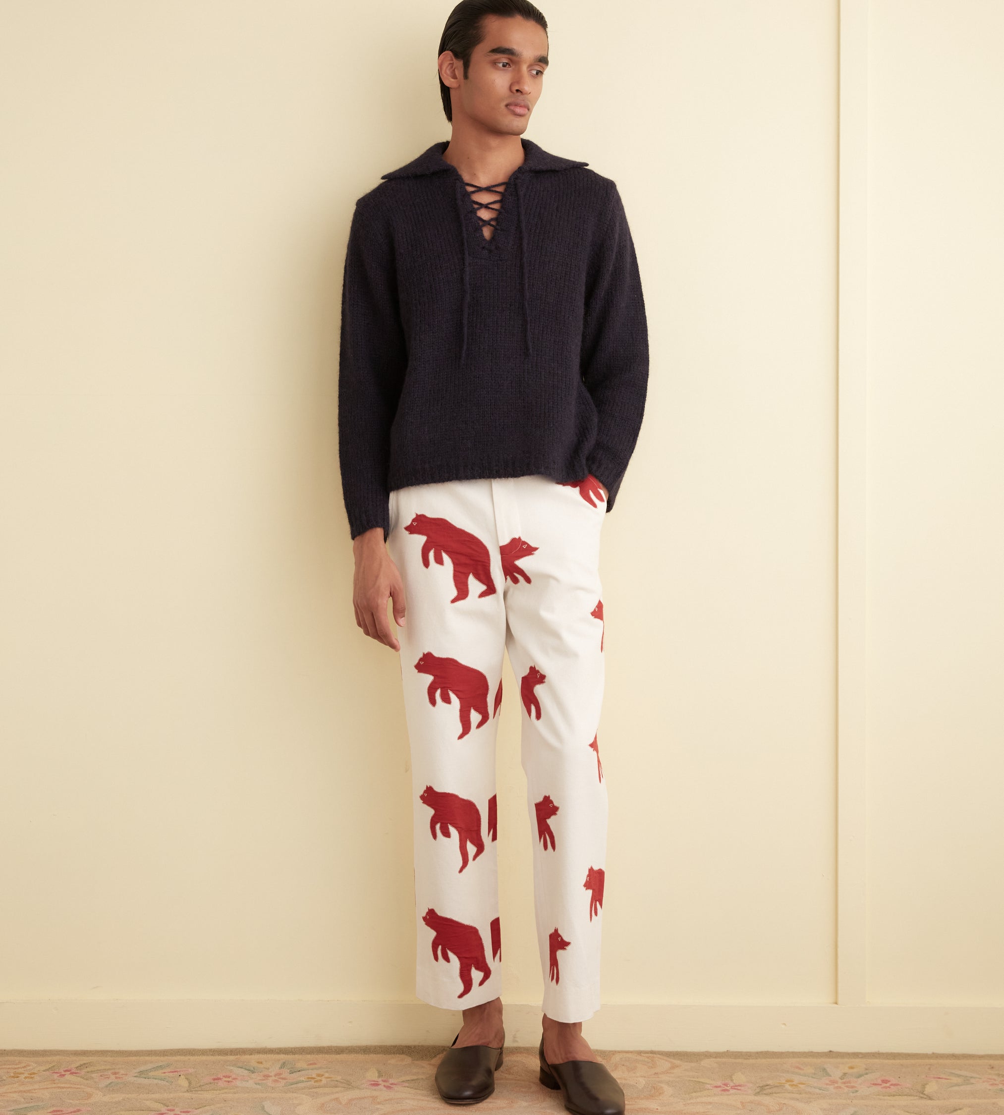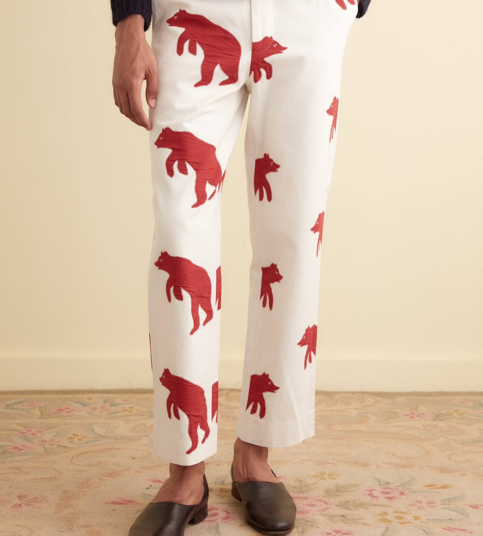 BODE Men’s Ready To Wear Bear Appliqué Trousers