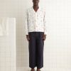 This shirt is inspired by bed sheets from the 1960s-1970s. We reproduced the original print—a pop art floral—for this shirt, which features a camp collar and a straight hem.