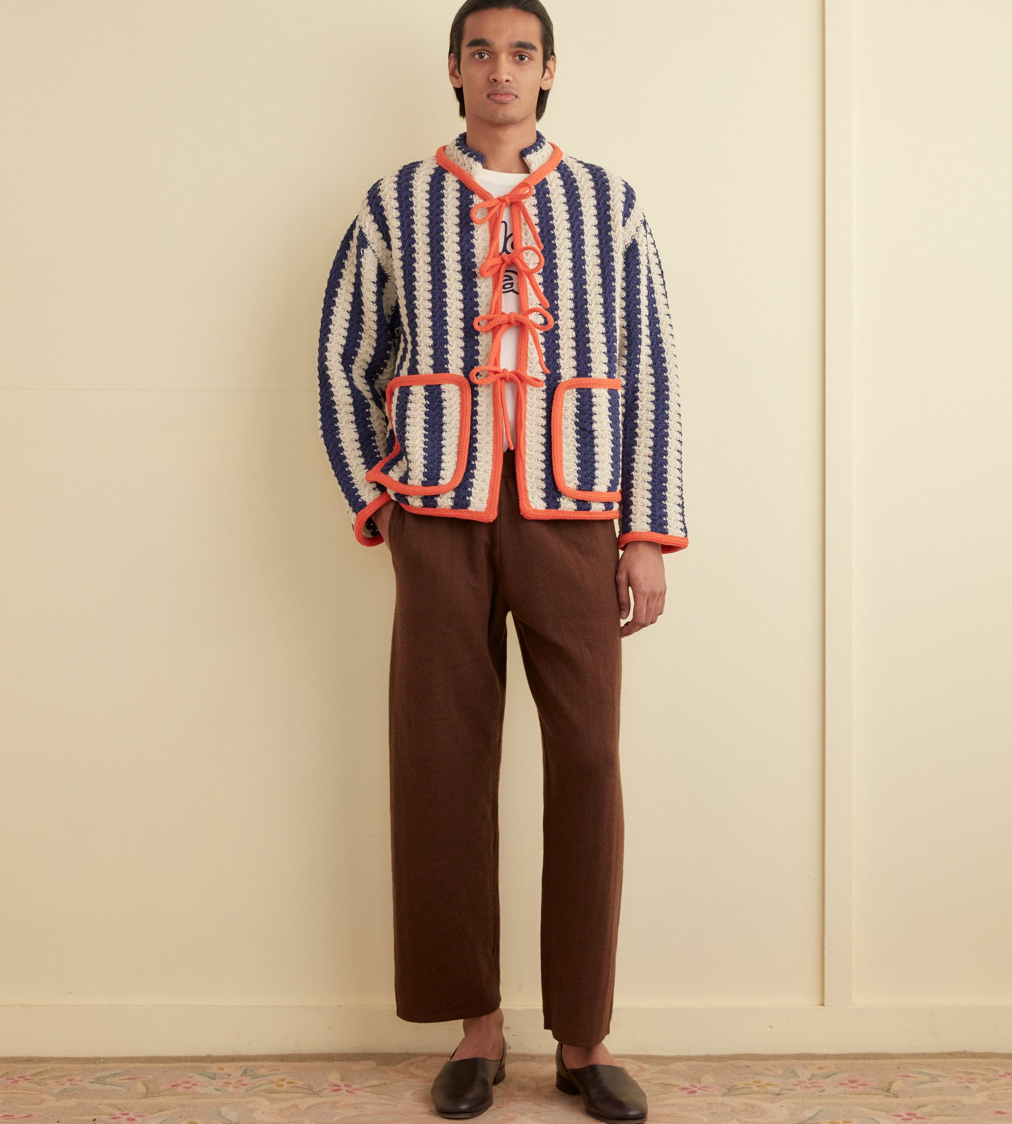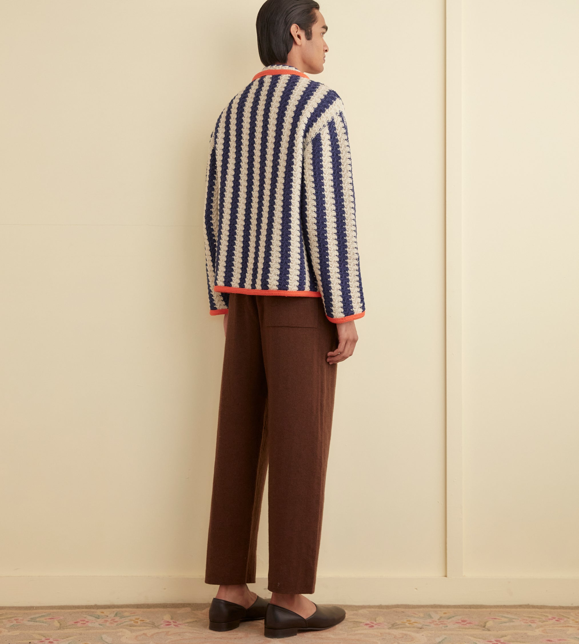 BODE Men’s Ready To Wear Bold Stripe Cardigan – Blue/cream