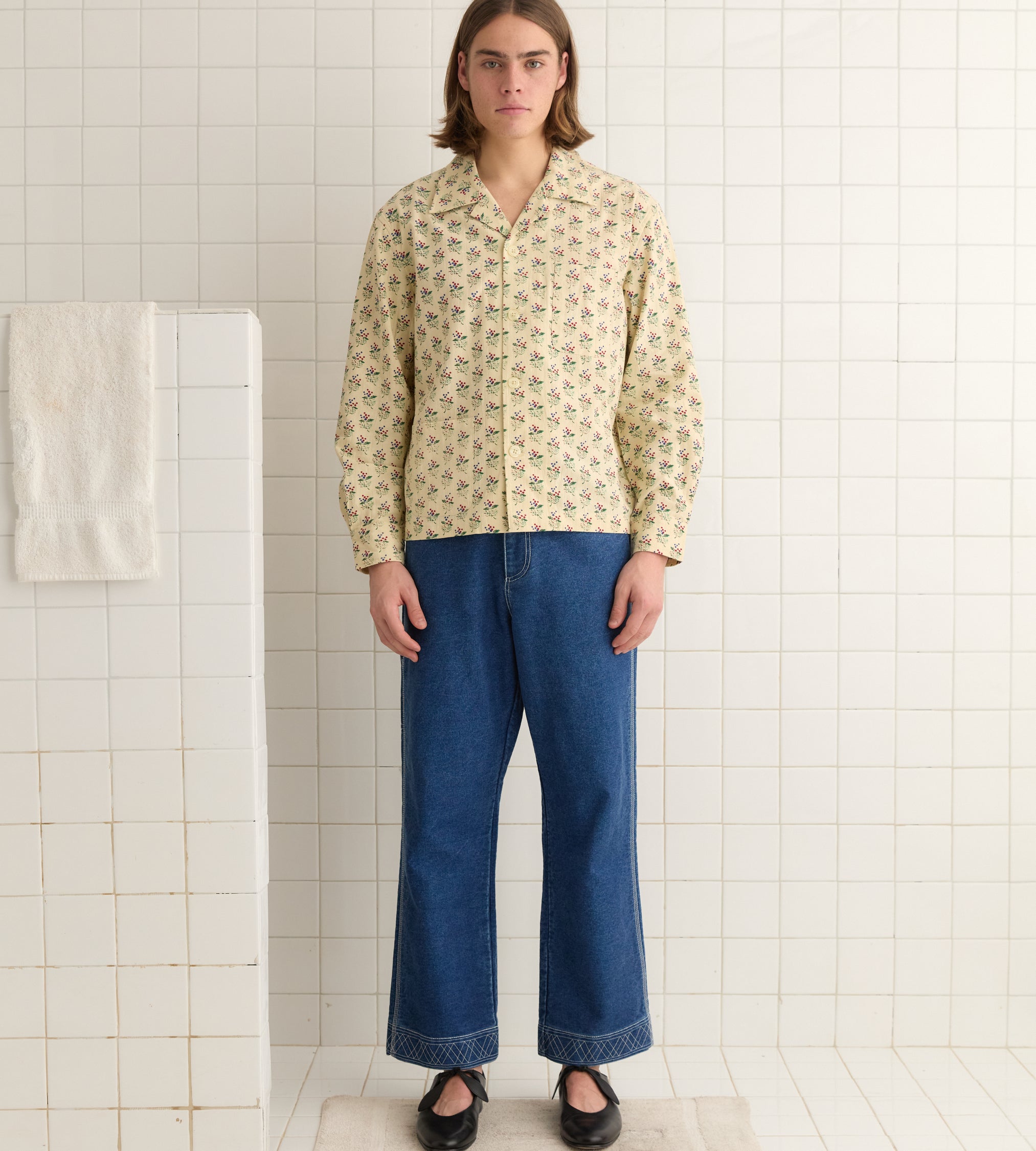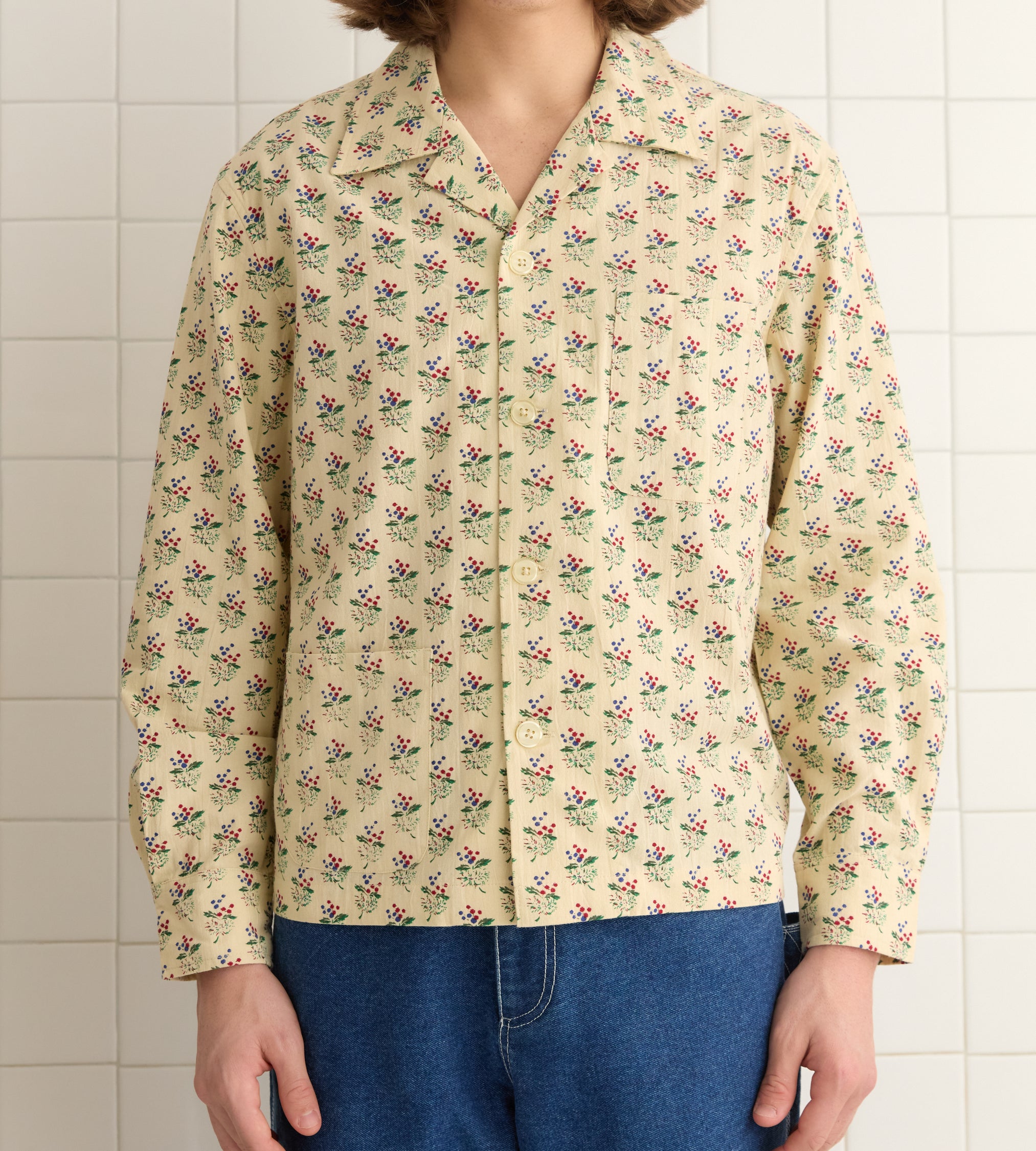 This long sleeve shirt is inspired by a scrap of fabric from the 1920s-1930s fabric, sourced from a shuttered French textile factory. We reproduced the bouquet motif for this style.