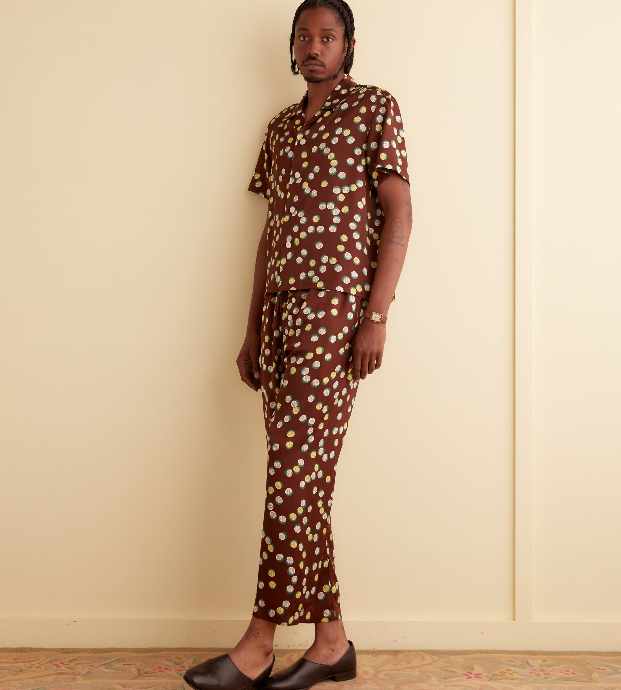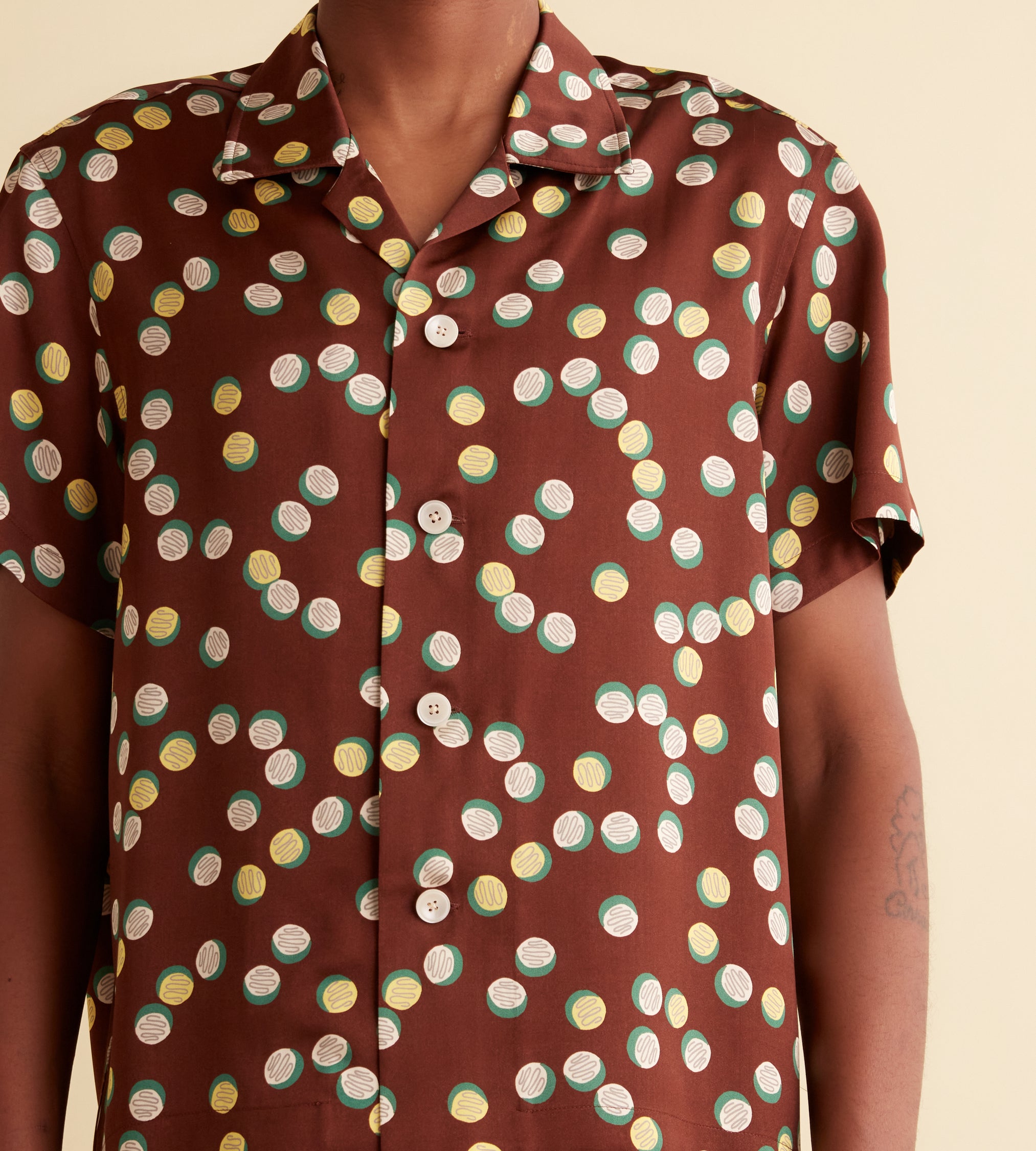 BODE Men’s Ready To Wear Bubble Dot Short Sleeve Shirt | Brown