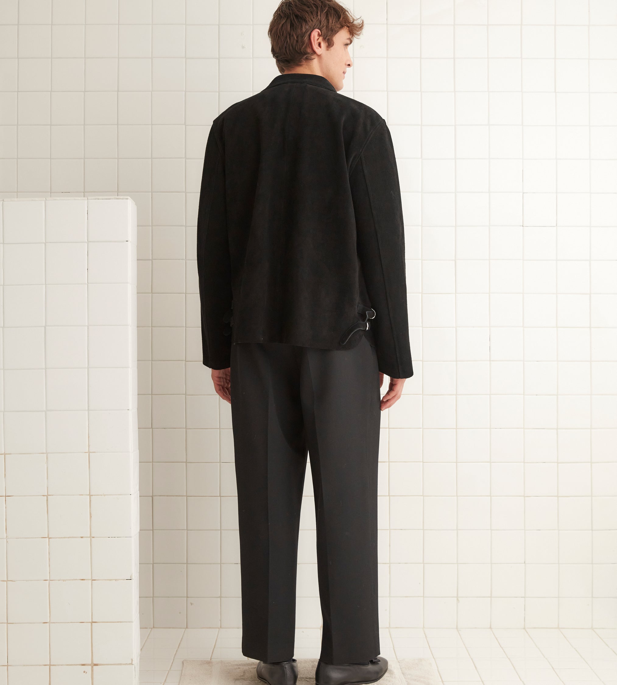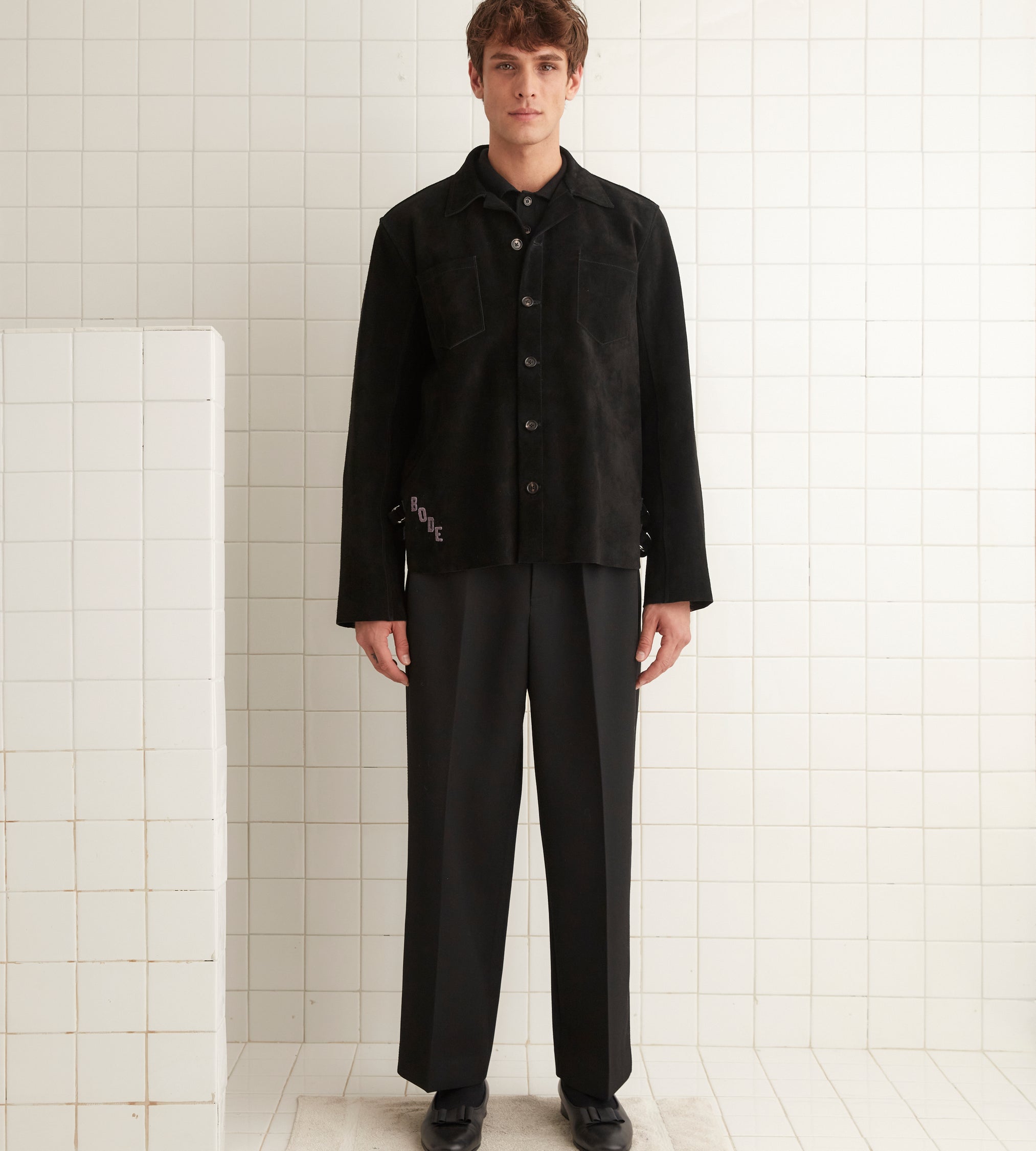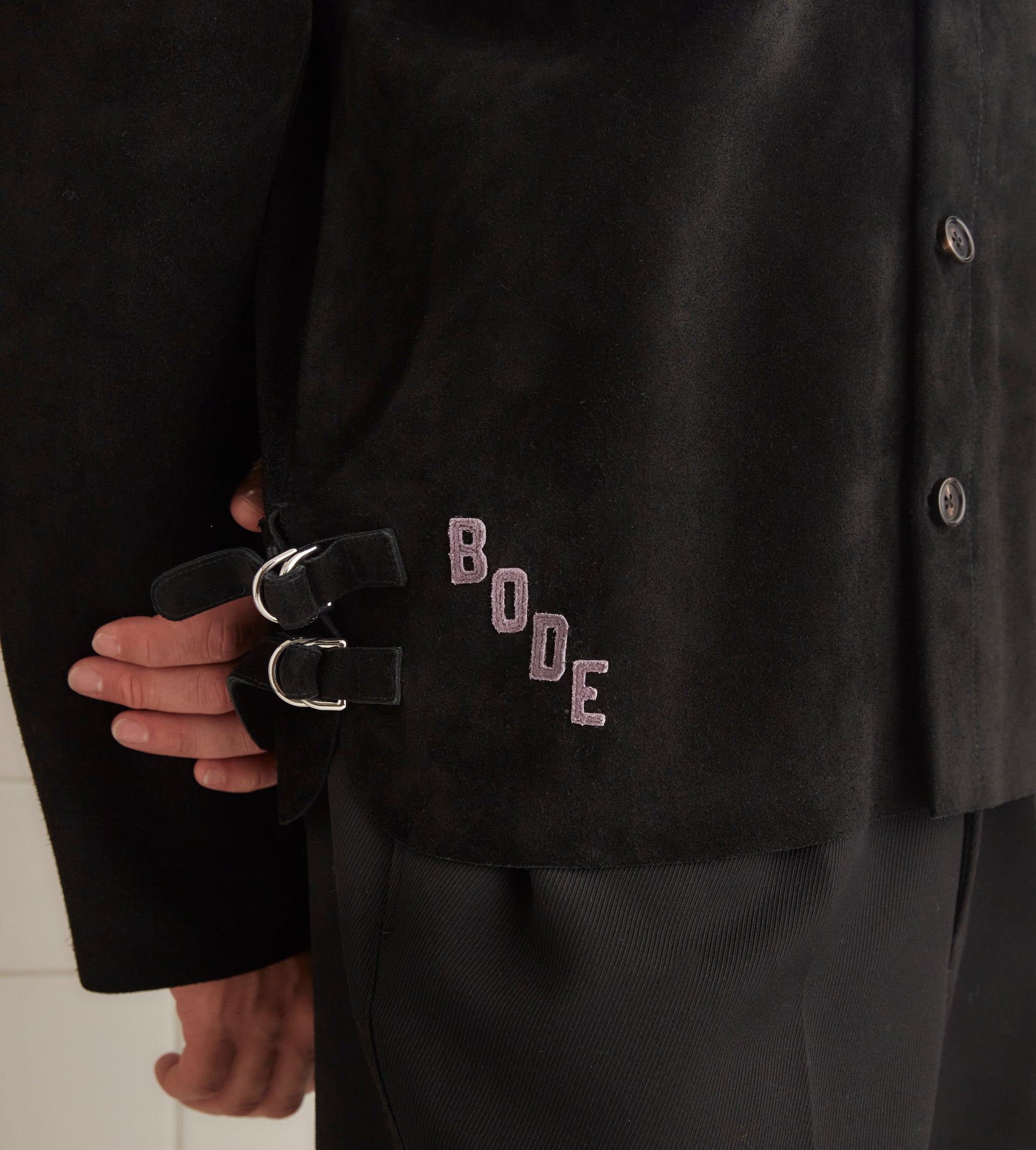 BODE Men’s Ready To Wear Buckled Suede Work Shirt – Black | Black