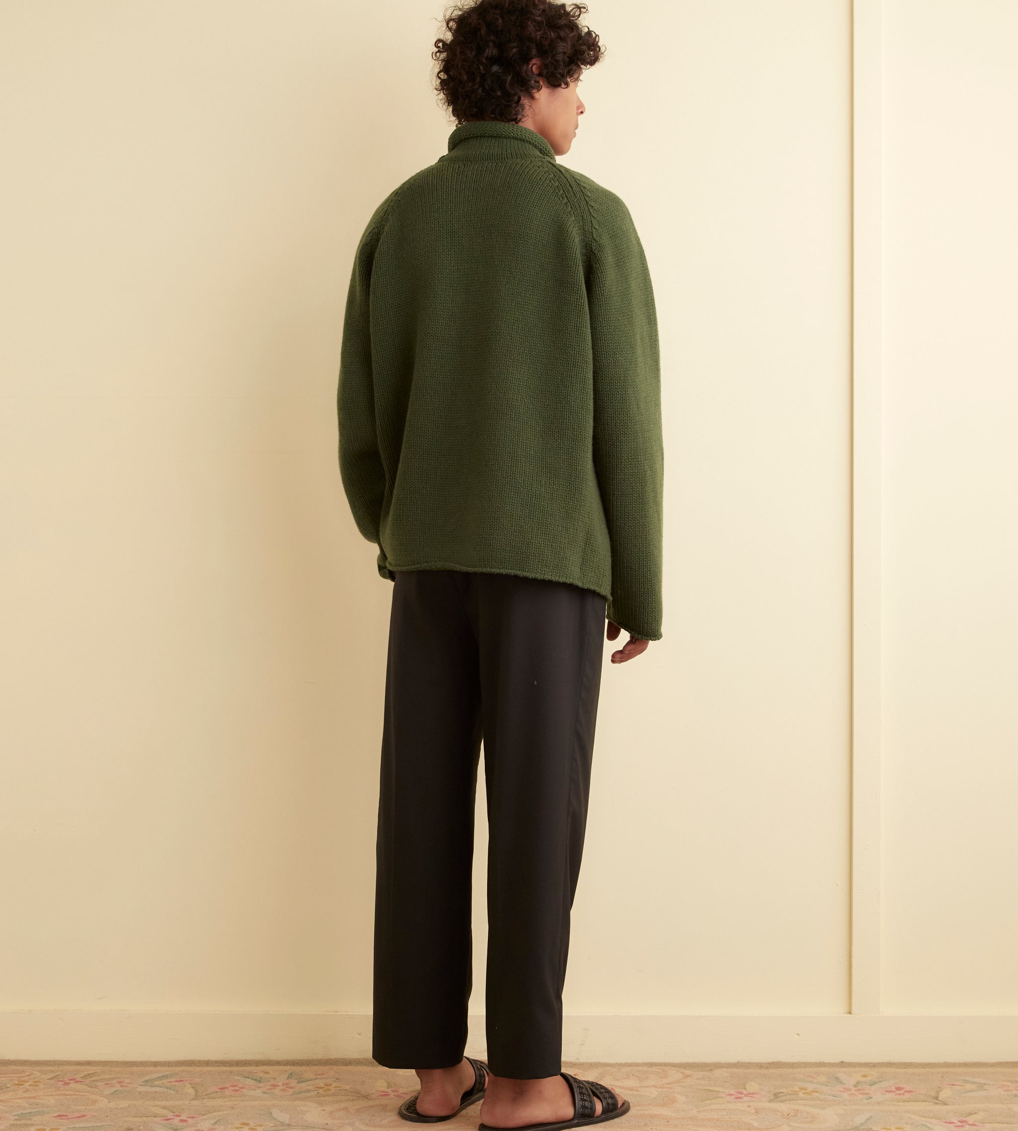 This rollneck sweater is inspired by adolescent knitwear, circa 1960s. The silhouette came from a teen’s sweater, reproduced in 100% cashmere and knit in Italy.