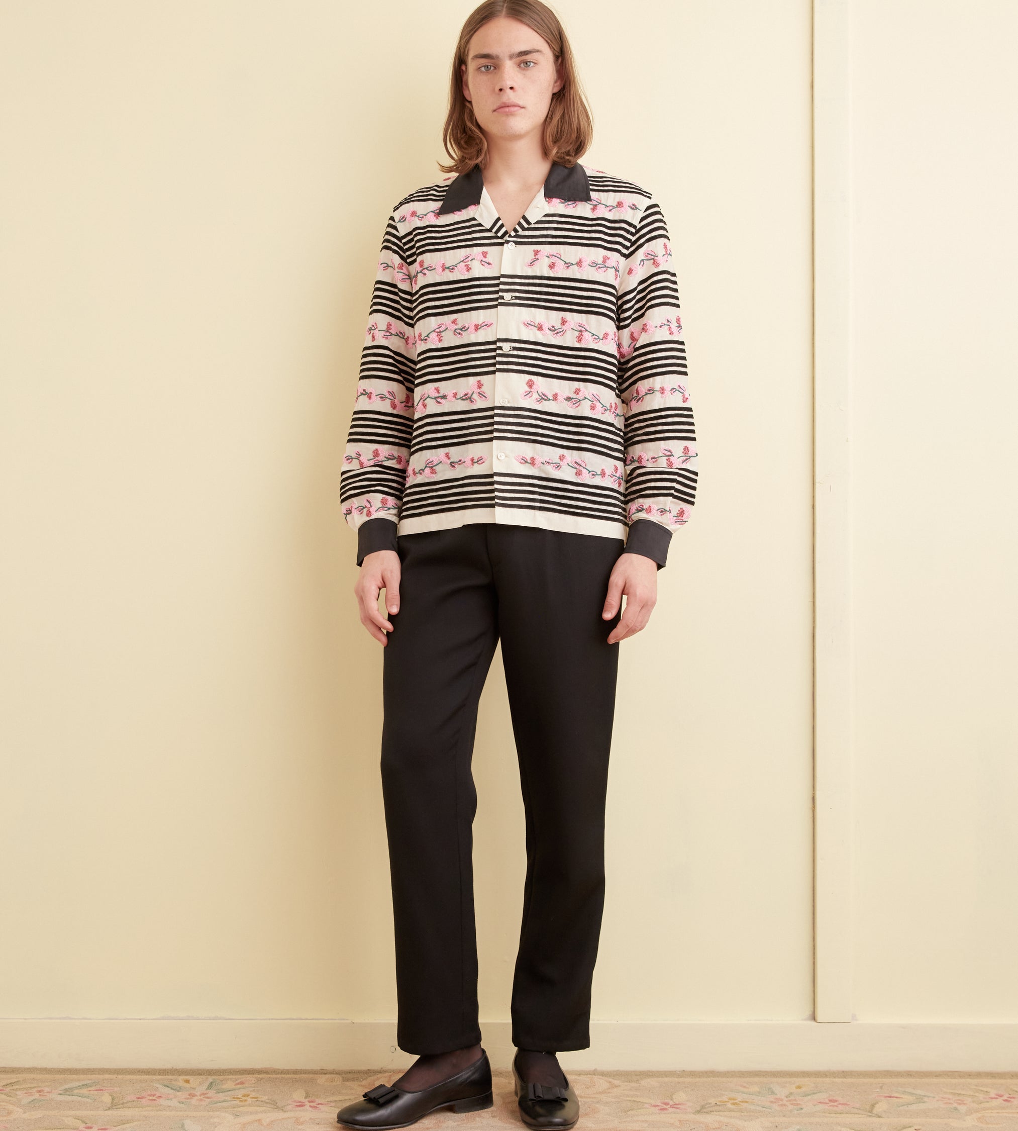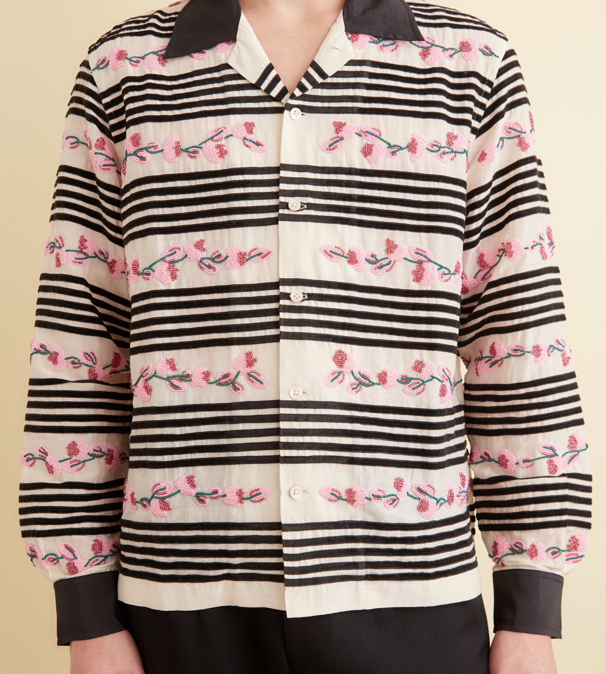 BODE Men’s Ready To Wear Cherry Blossom Stripe Long Sleeve Shirt | Multi
