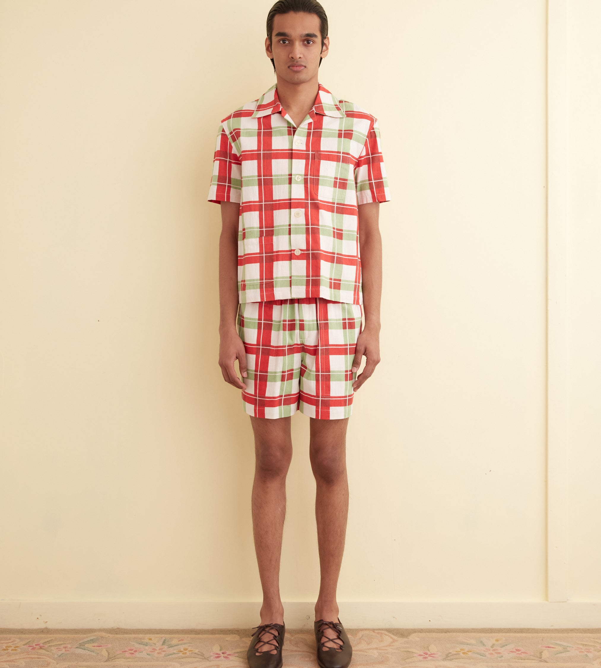 BODE Men’s Ready To Wear Complementary Plaid Short Sleeve Shirt