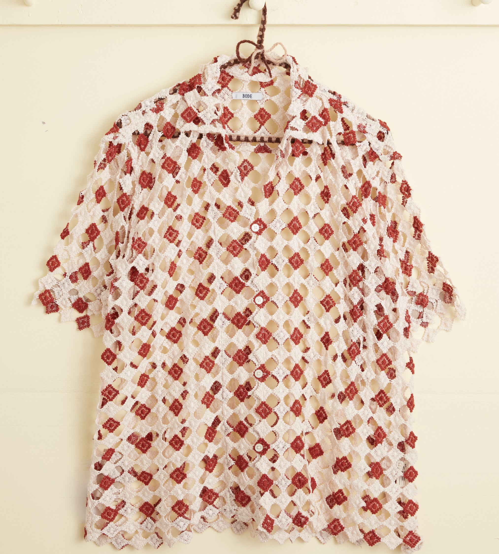 BODE Men’s Ready To Wear Diamond Lace Short Sleeve Shirt