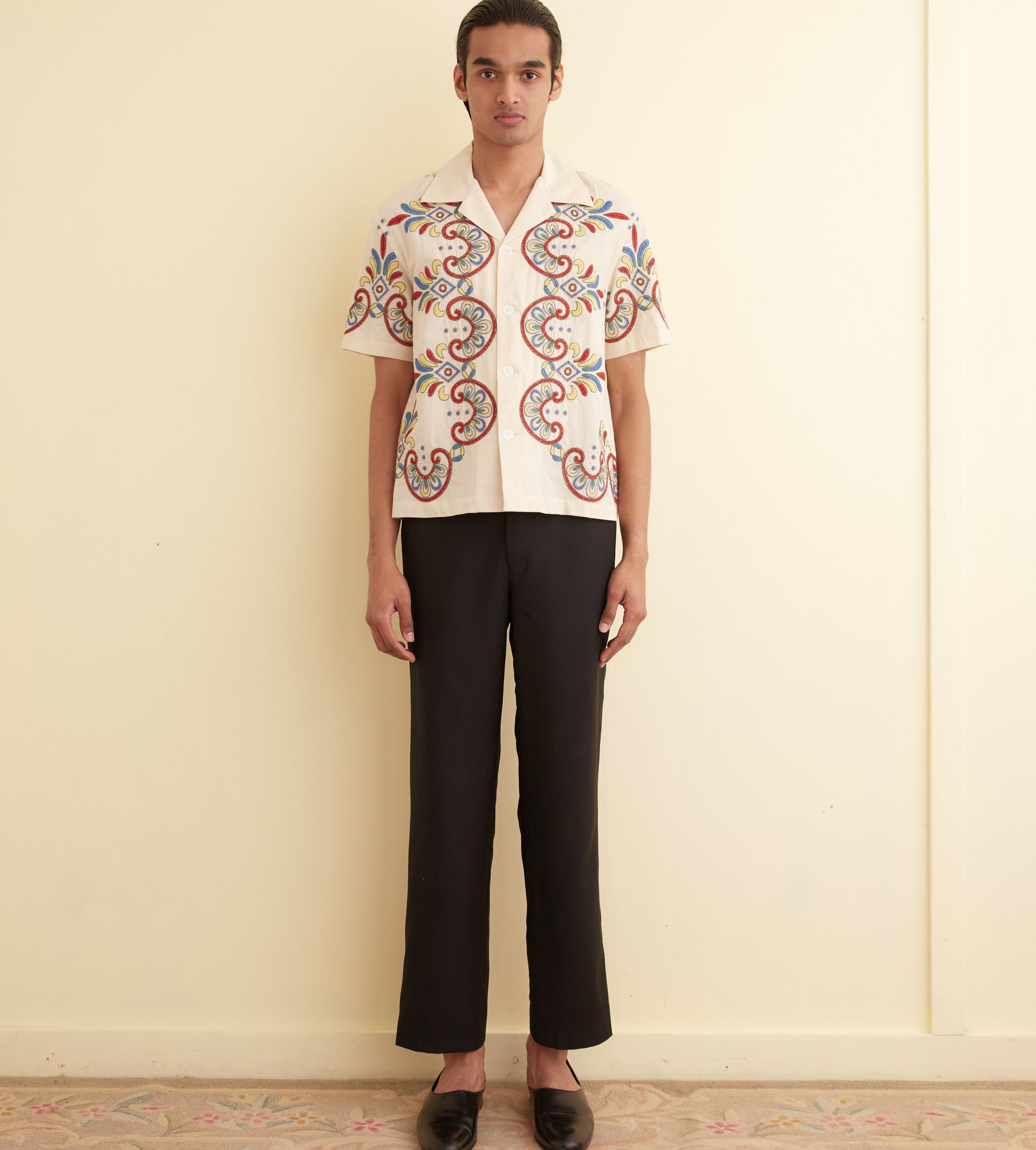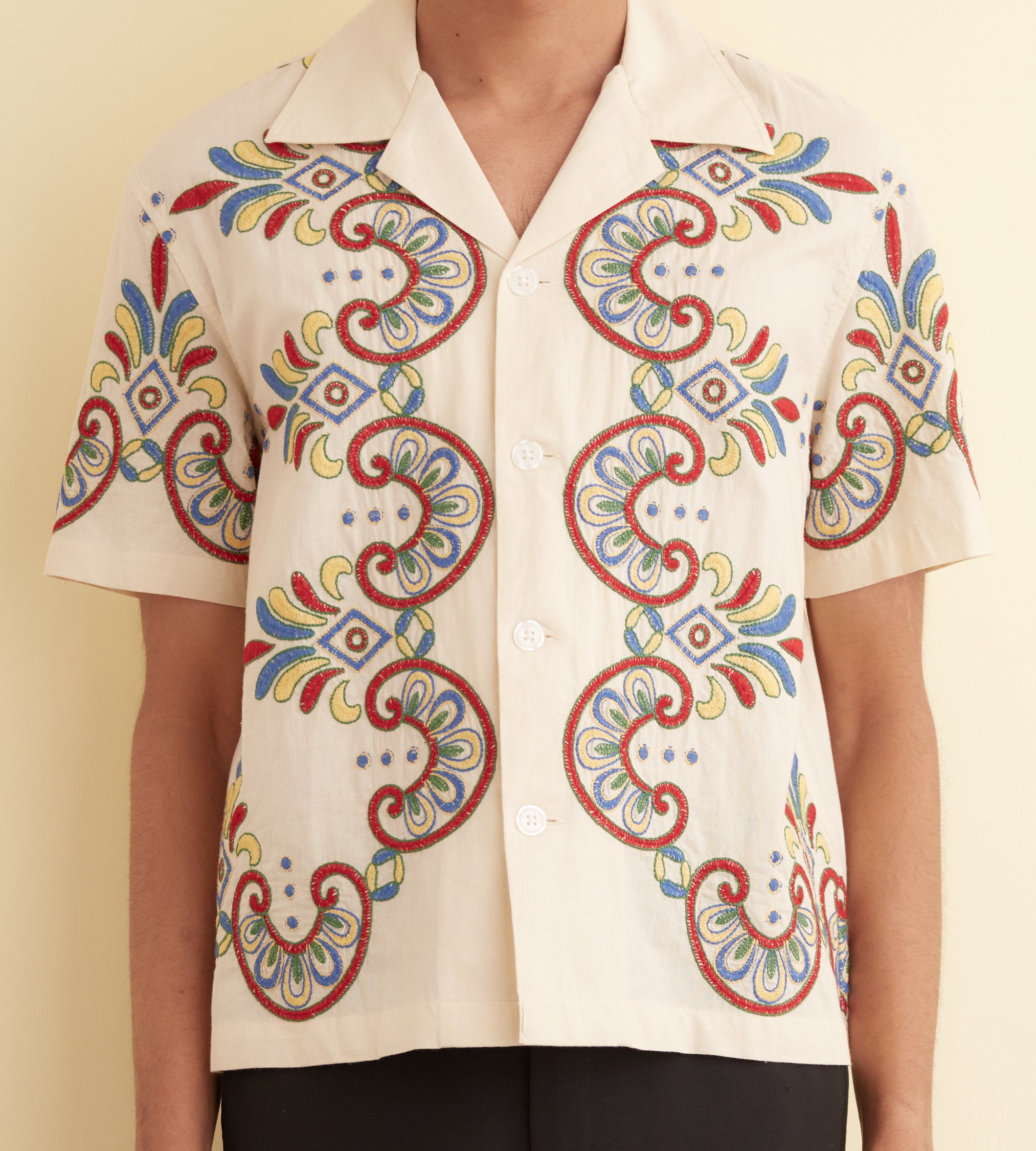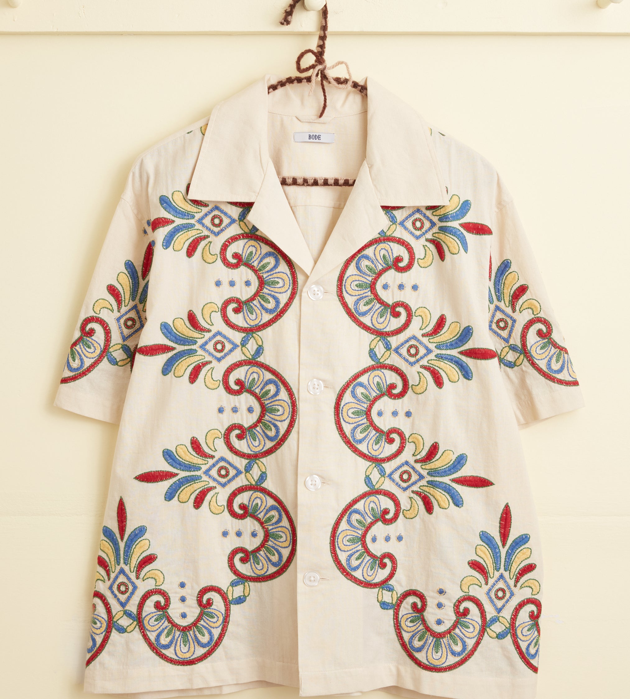 BODE Men’s Ready To Wear Embroidered Carnival Short Sleeve Shirt