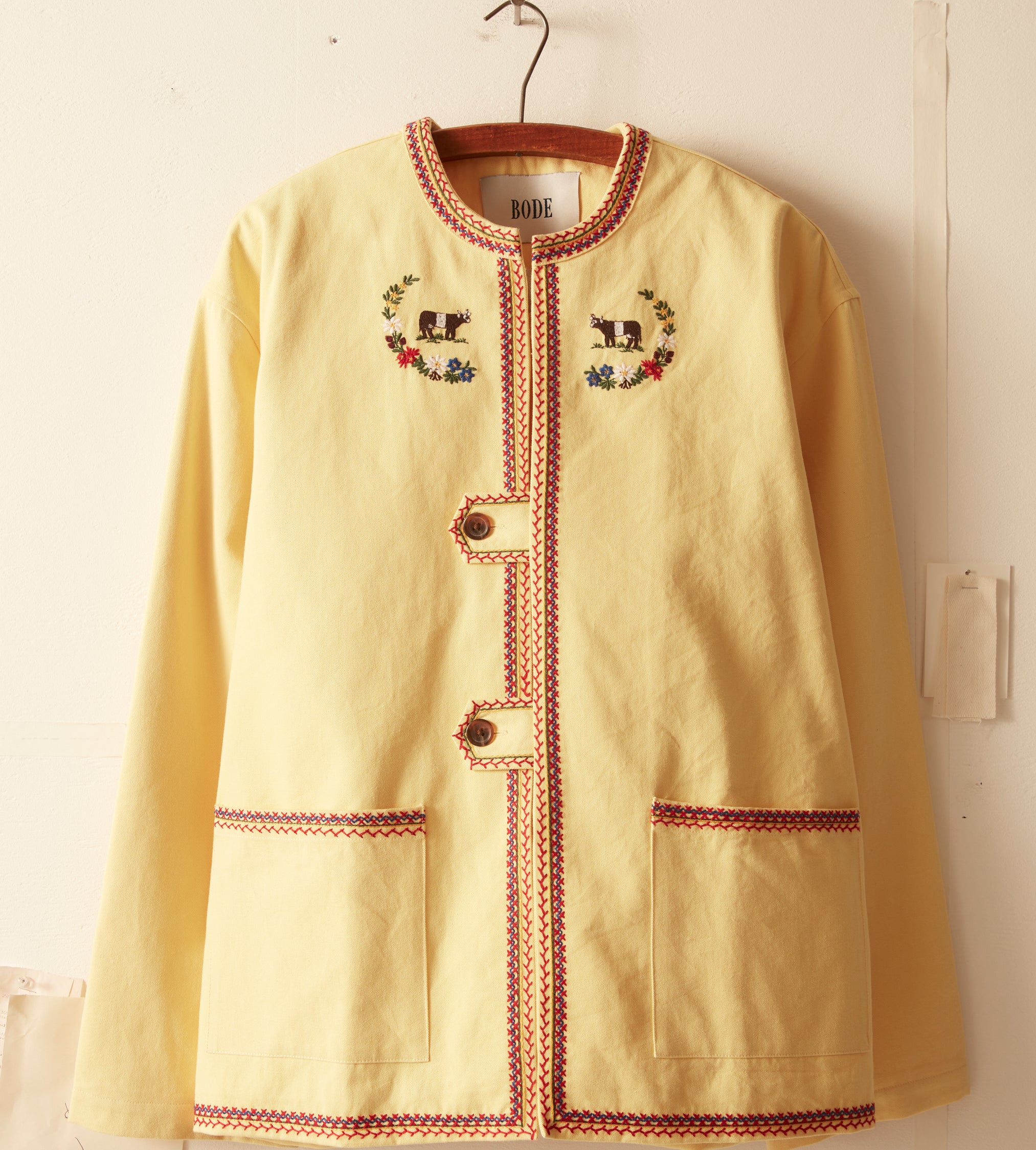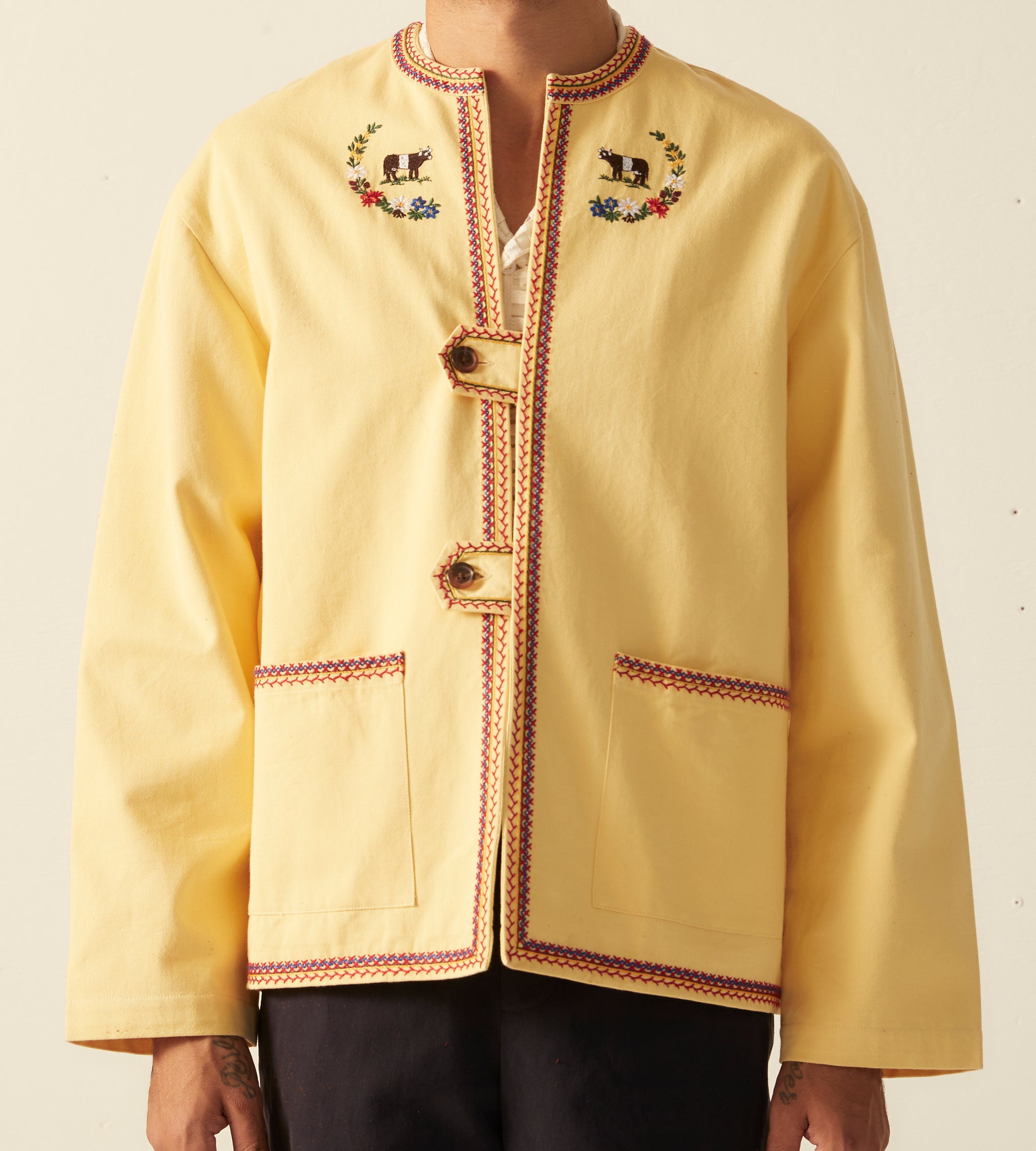 BODE Men’s Ready To Wear Embroidered Cow Jacket | Yellow