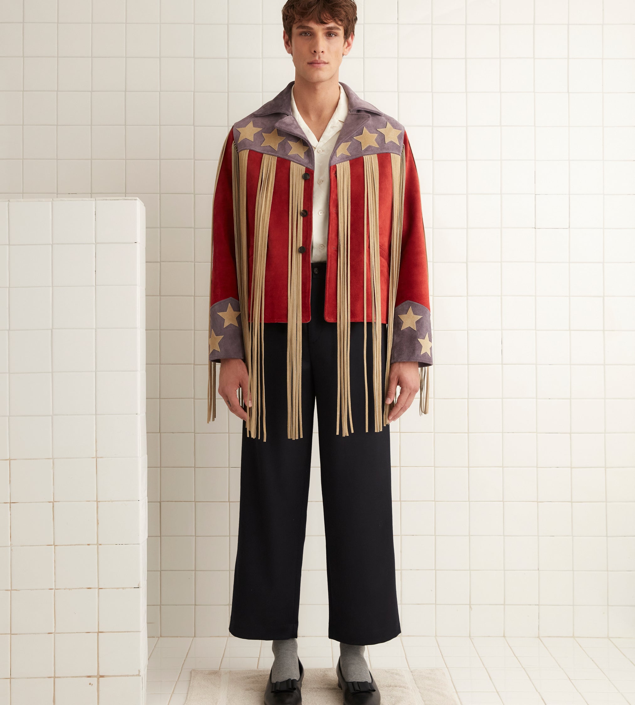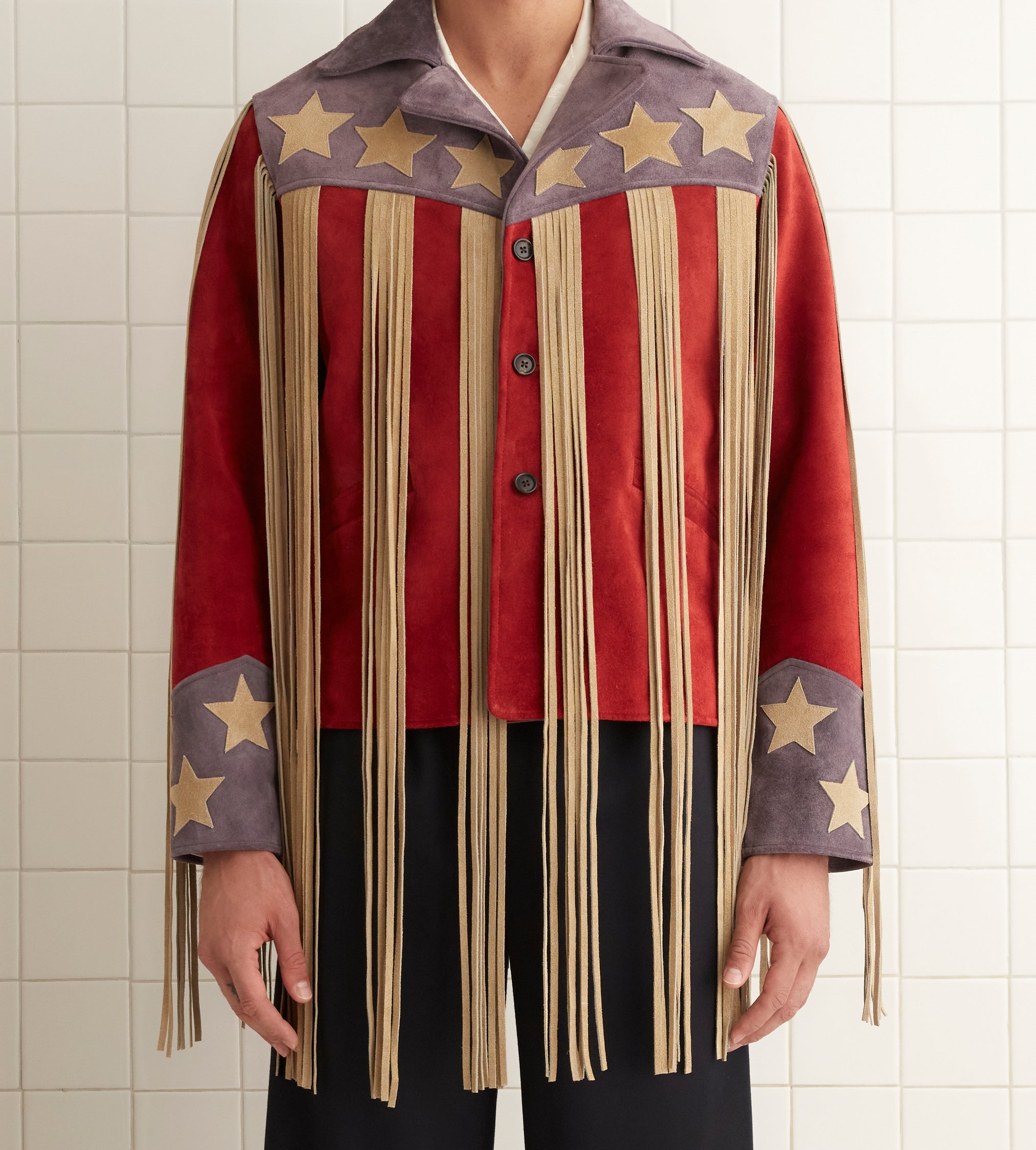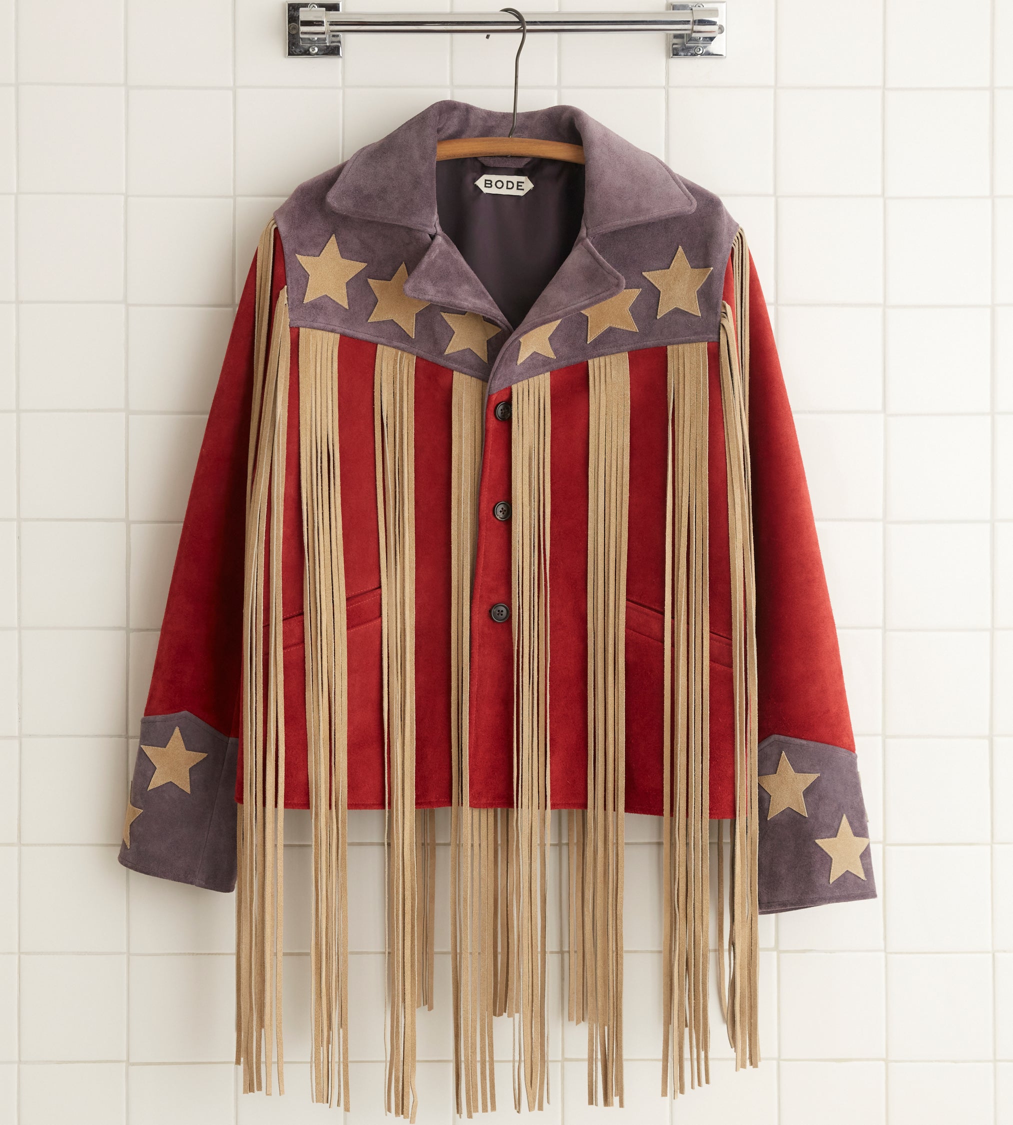 BODE Men’s Ready To Wear Flag Fringe Jacket | Red & White & Blue