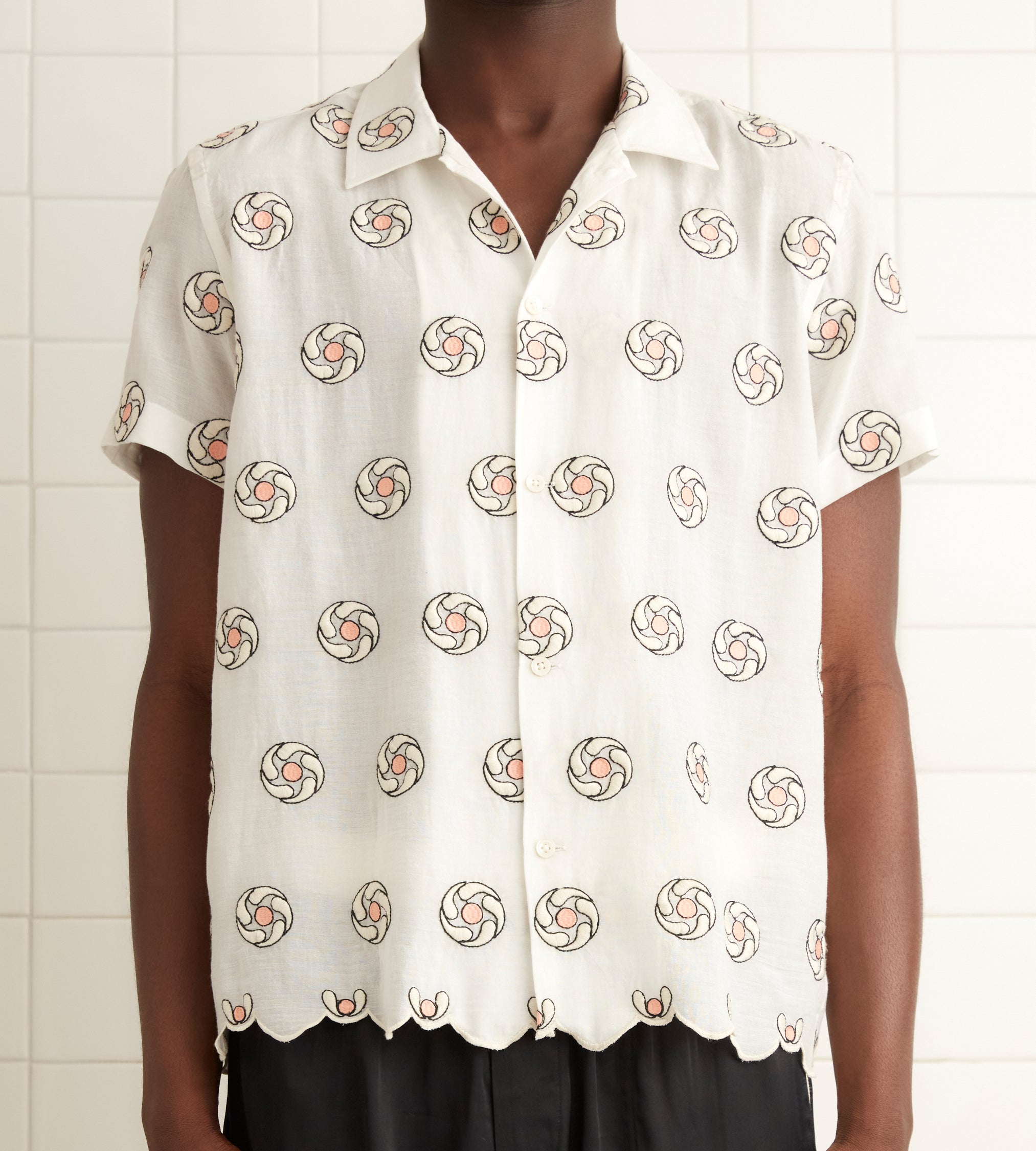 BODE Men’s Ready To Wear Floral Aperture Short Sleeve Shirt | White