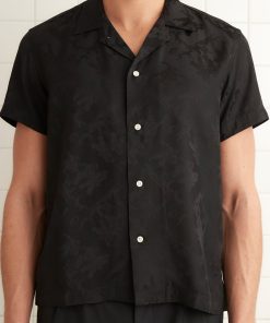 BODE Men’s Ready To Wear Football Jacquard Bowling Shirt – Black | Black