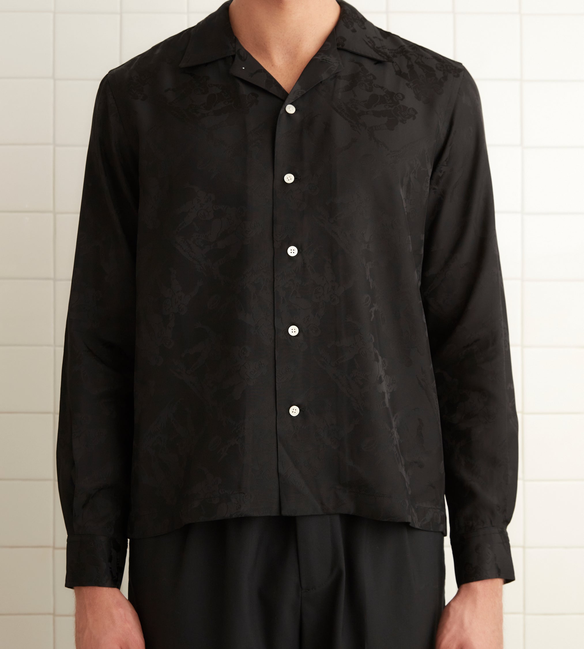 BODE Men’s Ready To Wear Football Jacquard Havana Shirt – Black | Black