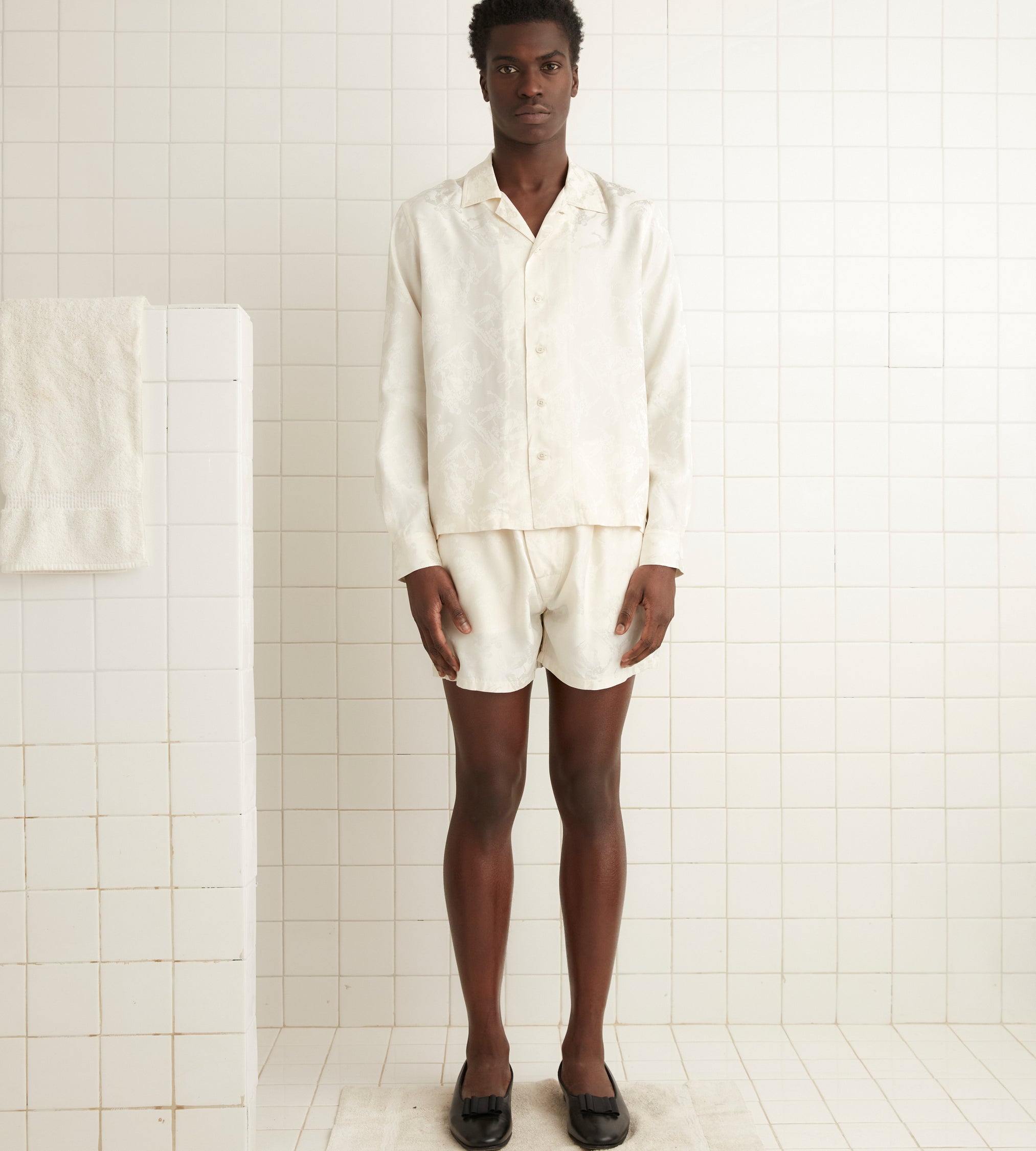 BODE Men’s Ready To Wear Football Jacquard Havana Shirt – Cream | Cream