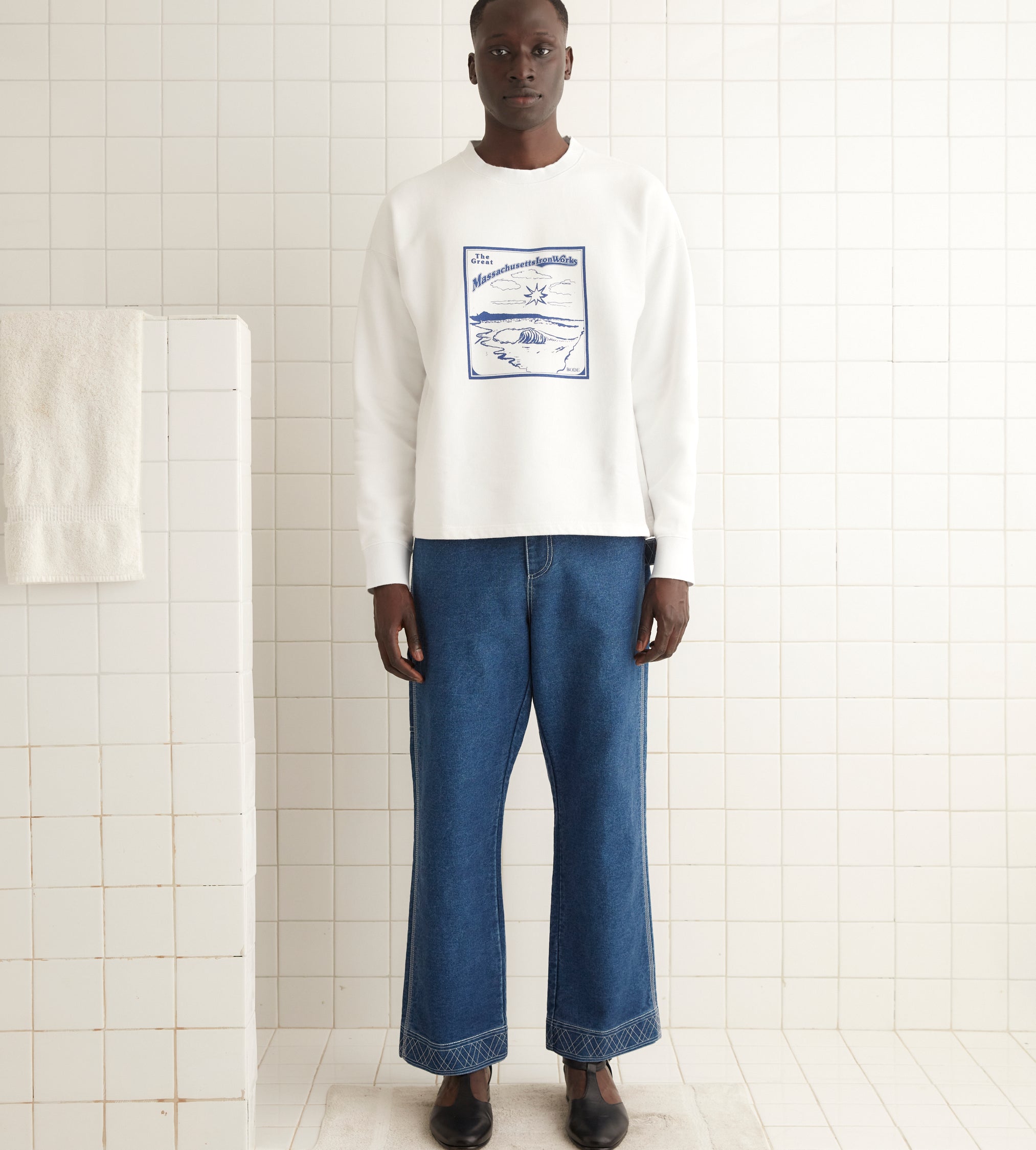 This sweatshirt is inspired by an employee shirt from a 1980s metalworks factory. We reimagined the design for this heavyweight crewneck.