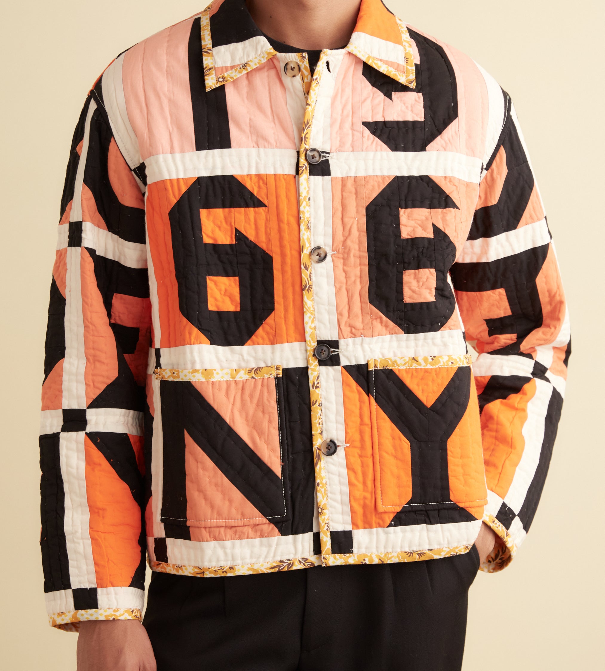 BODE Men’s Ready To Wear Letter Block Quilt Jacket | Orange
