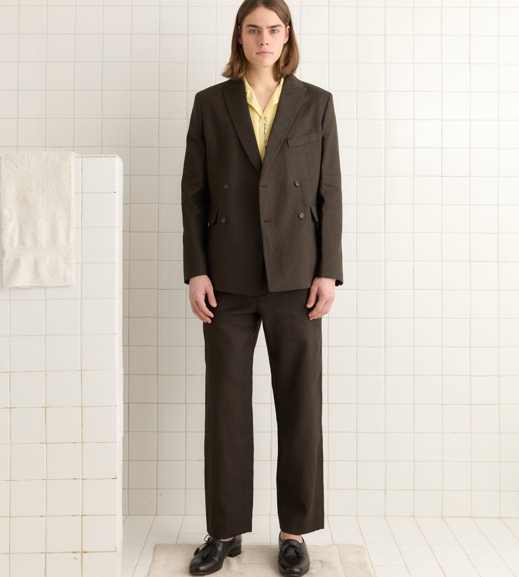 BODE Men’s Ready To Wear Lightweight Linen Double-breasted Suit Jacket – Brown/black | Brown & Black