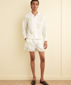 These boxers are inspired by a fabric swatch from the 1950s-1960s. The fabric features a pale green lily-of-the-valley print, replicated from the original material.