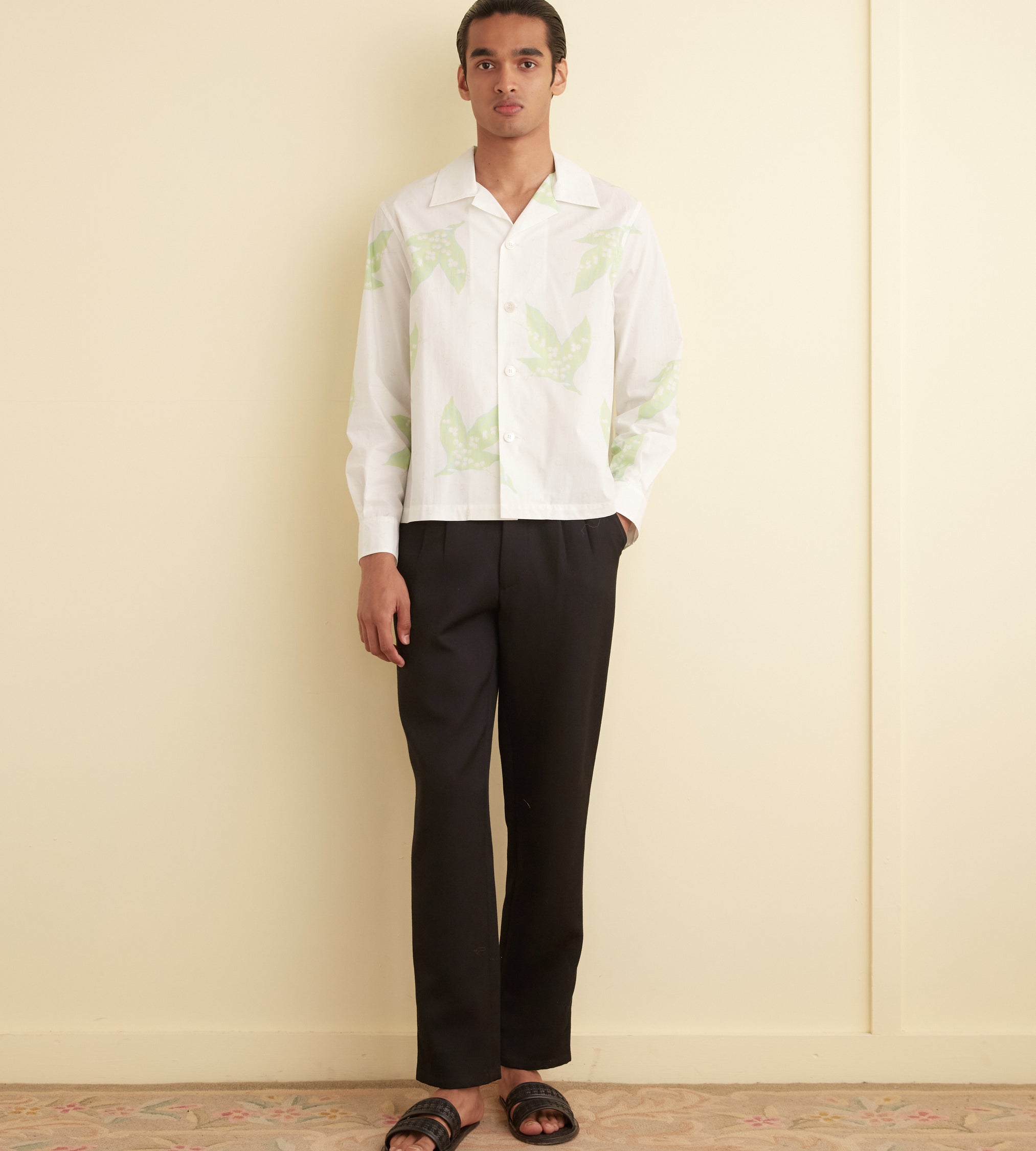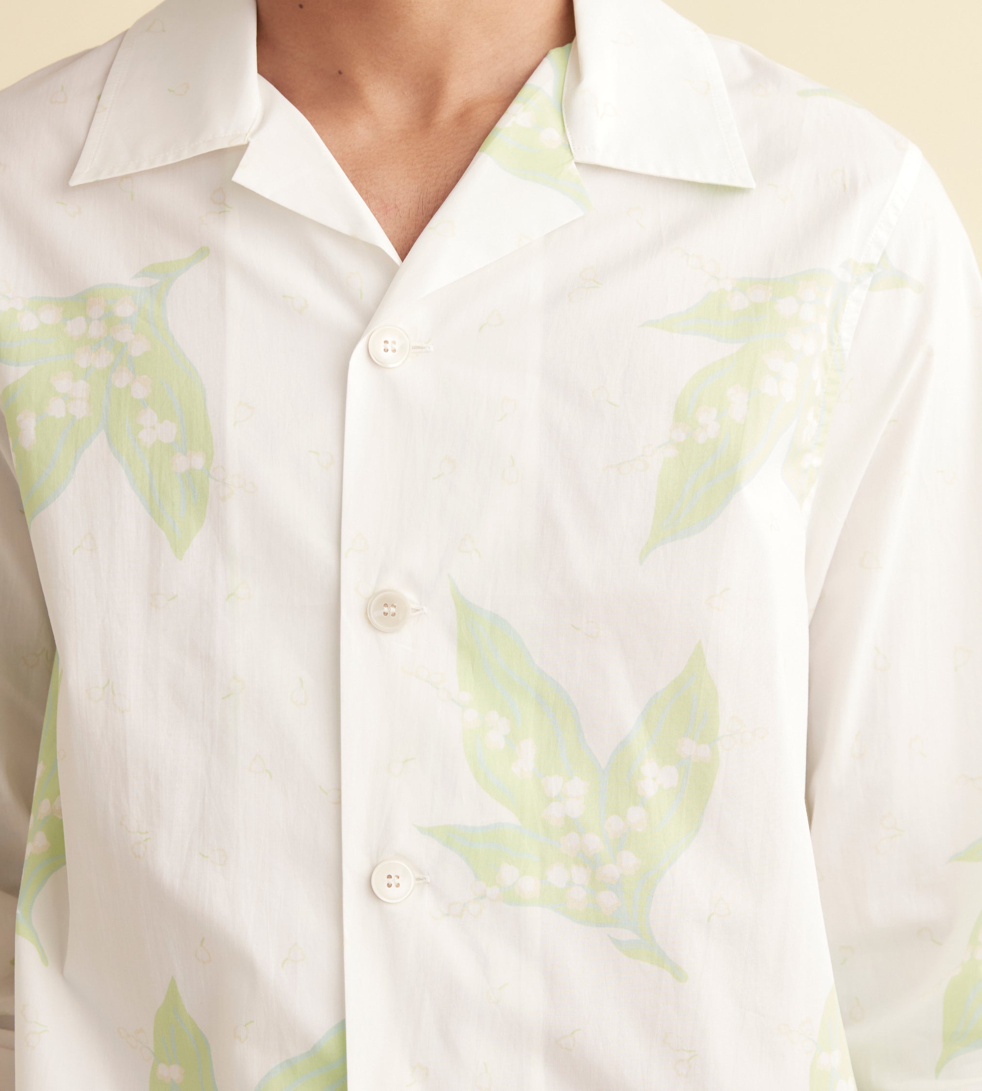 BODE Men’s Ready To Wear Lily Of The Valley Long Sleeve Shirt | White