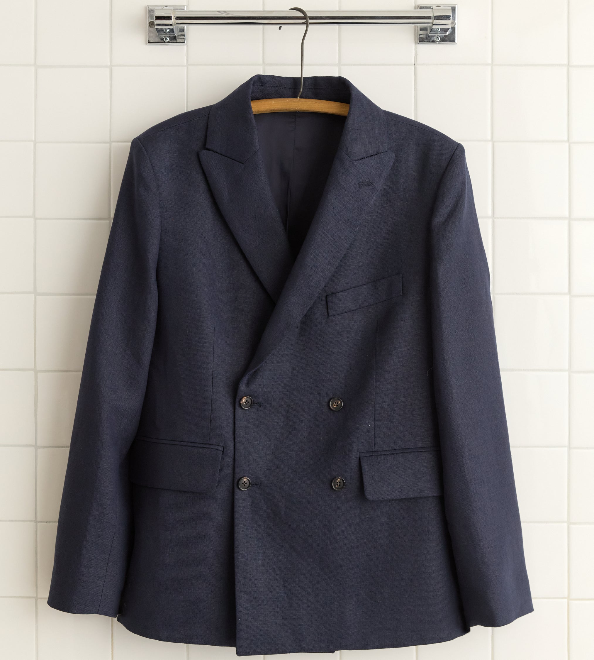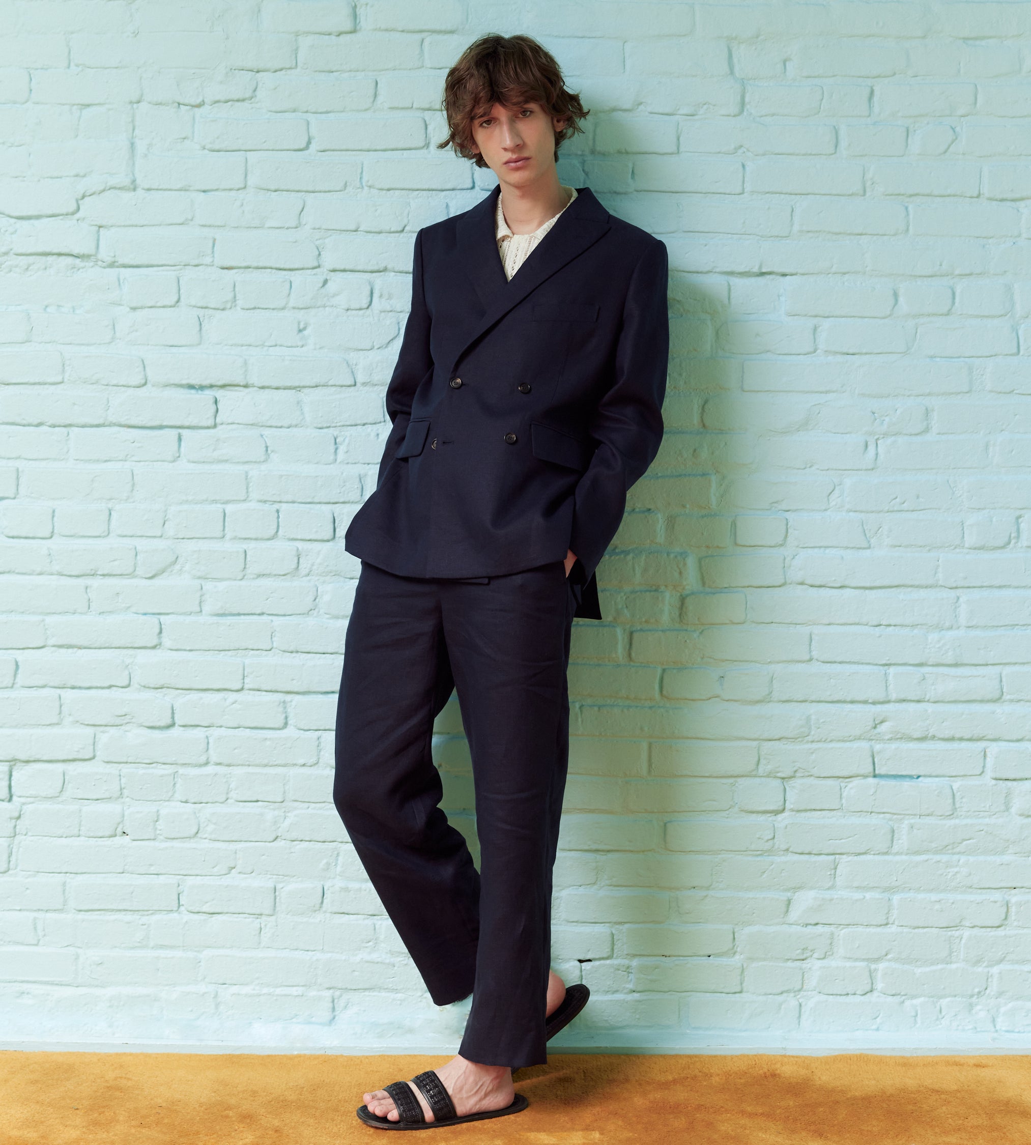 BODE Men’s Ready To Wear Linen Double-breasted Suit Jacket – Midnight | Midnight