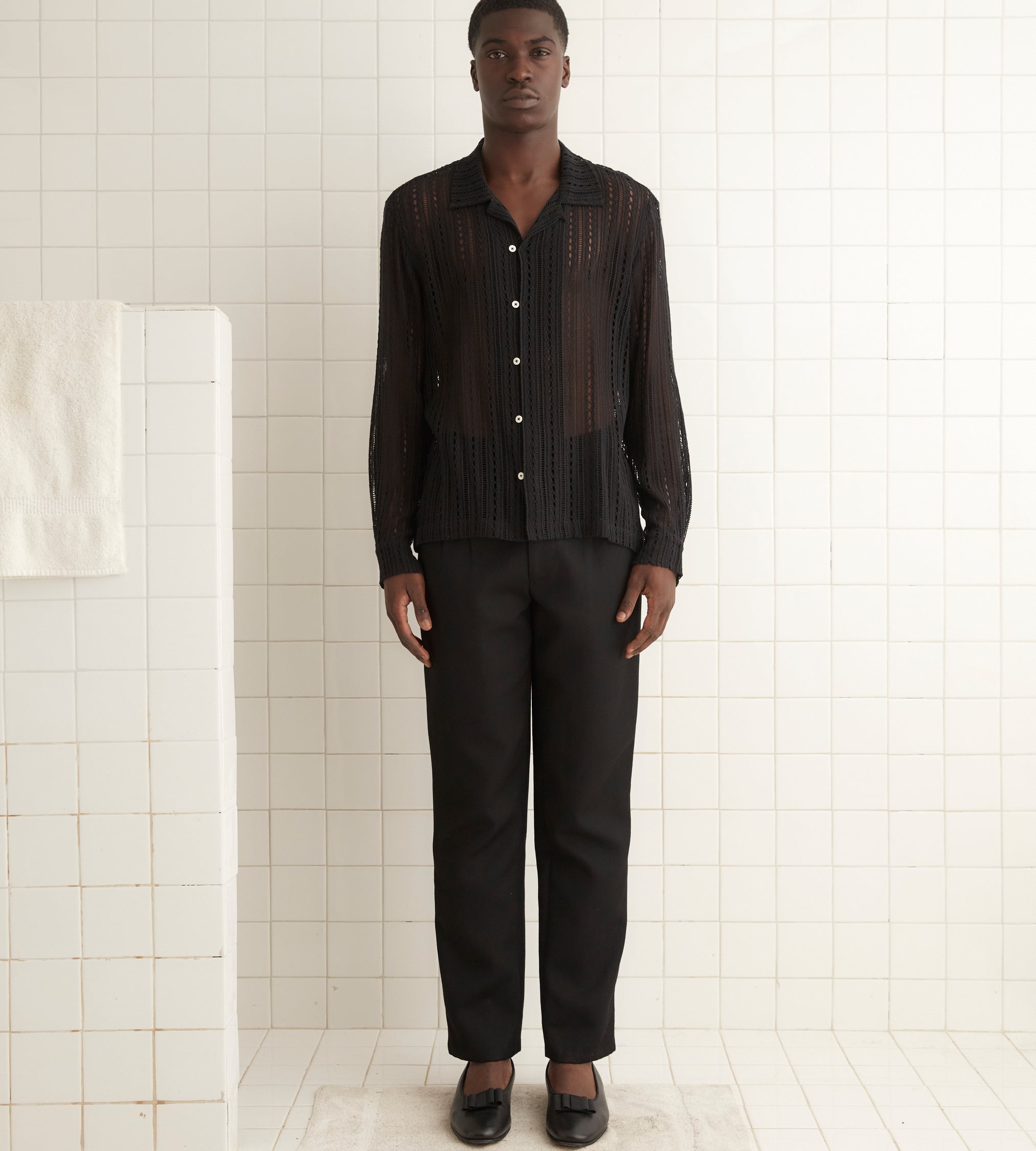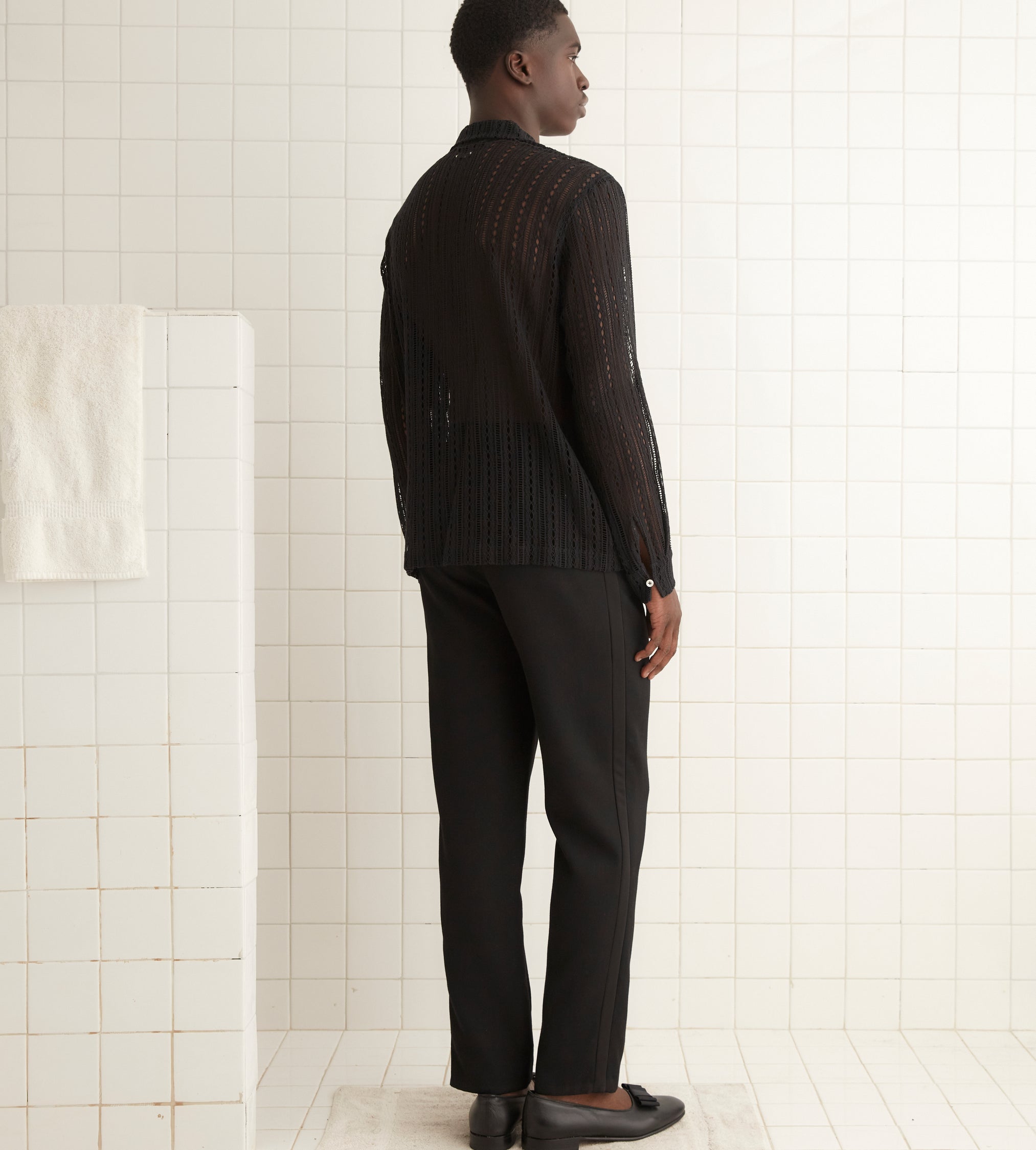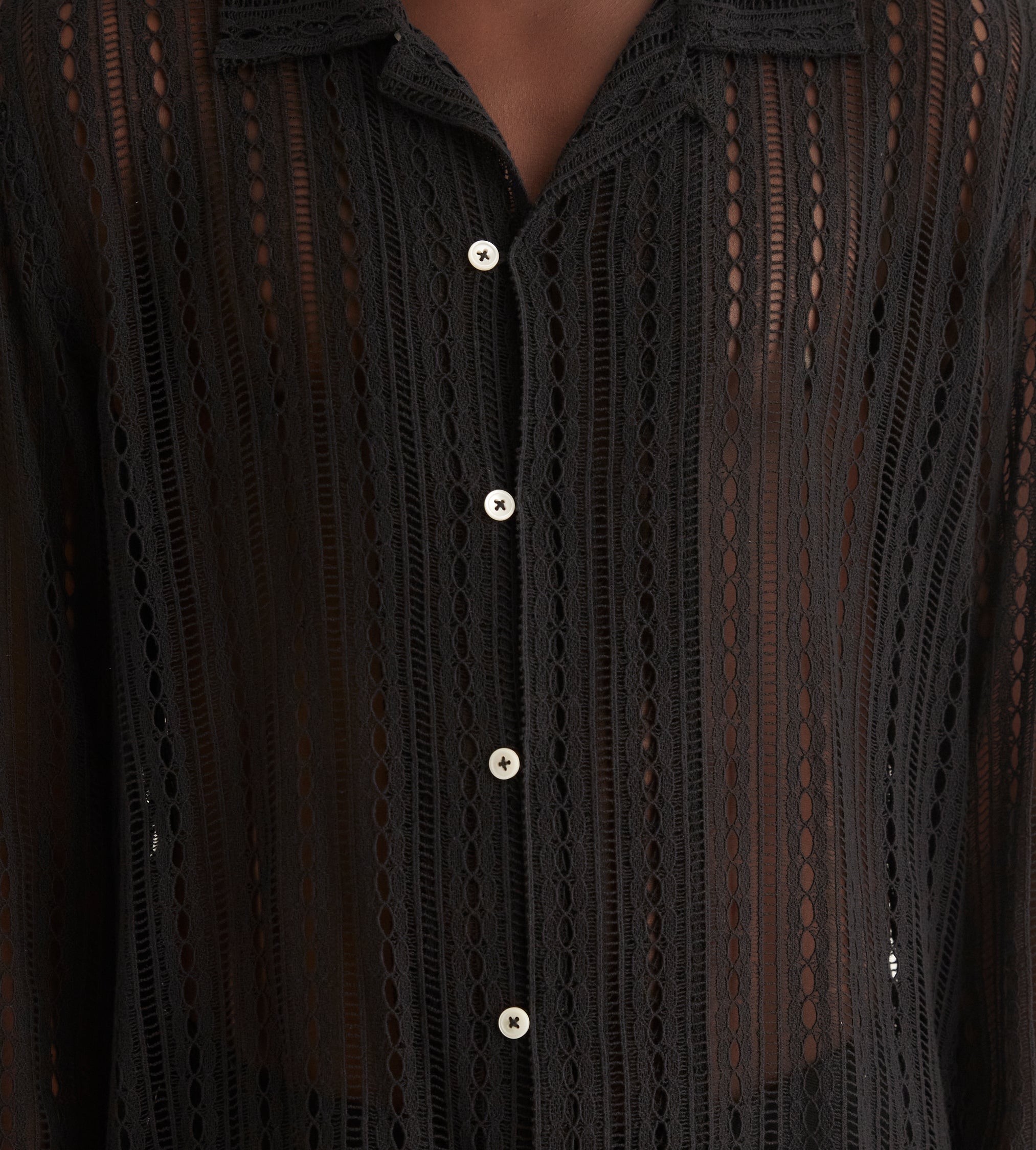 This shirt is inspired by machine lace from the 20th century. We reproduced the original lace for this style.
