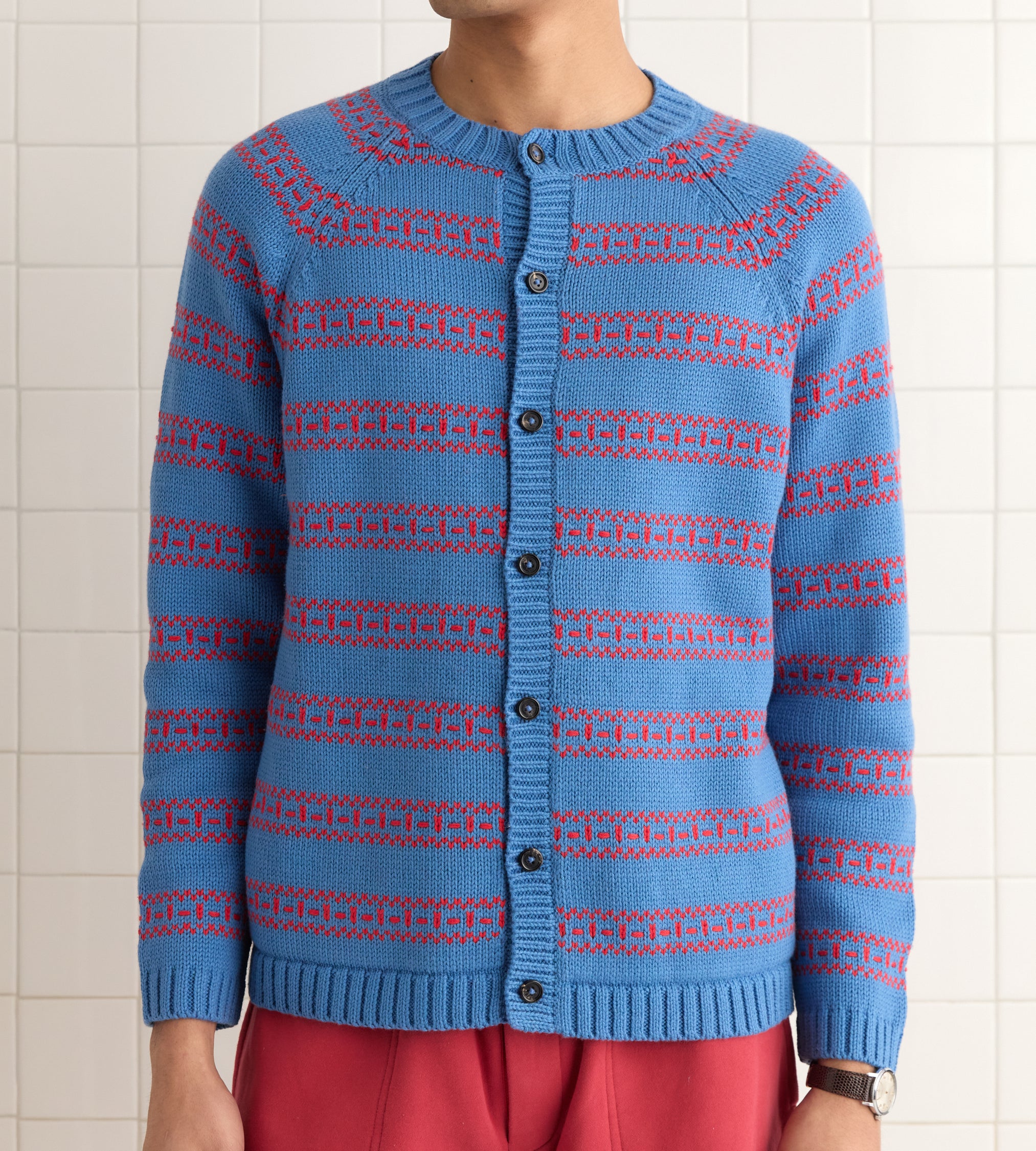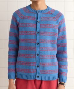 BODE Men’s Ready To Wear Meandering Stripe Cardigan – Blue | Blue