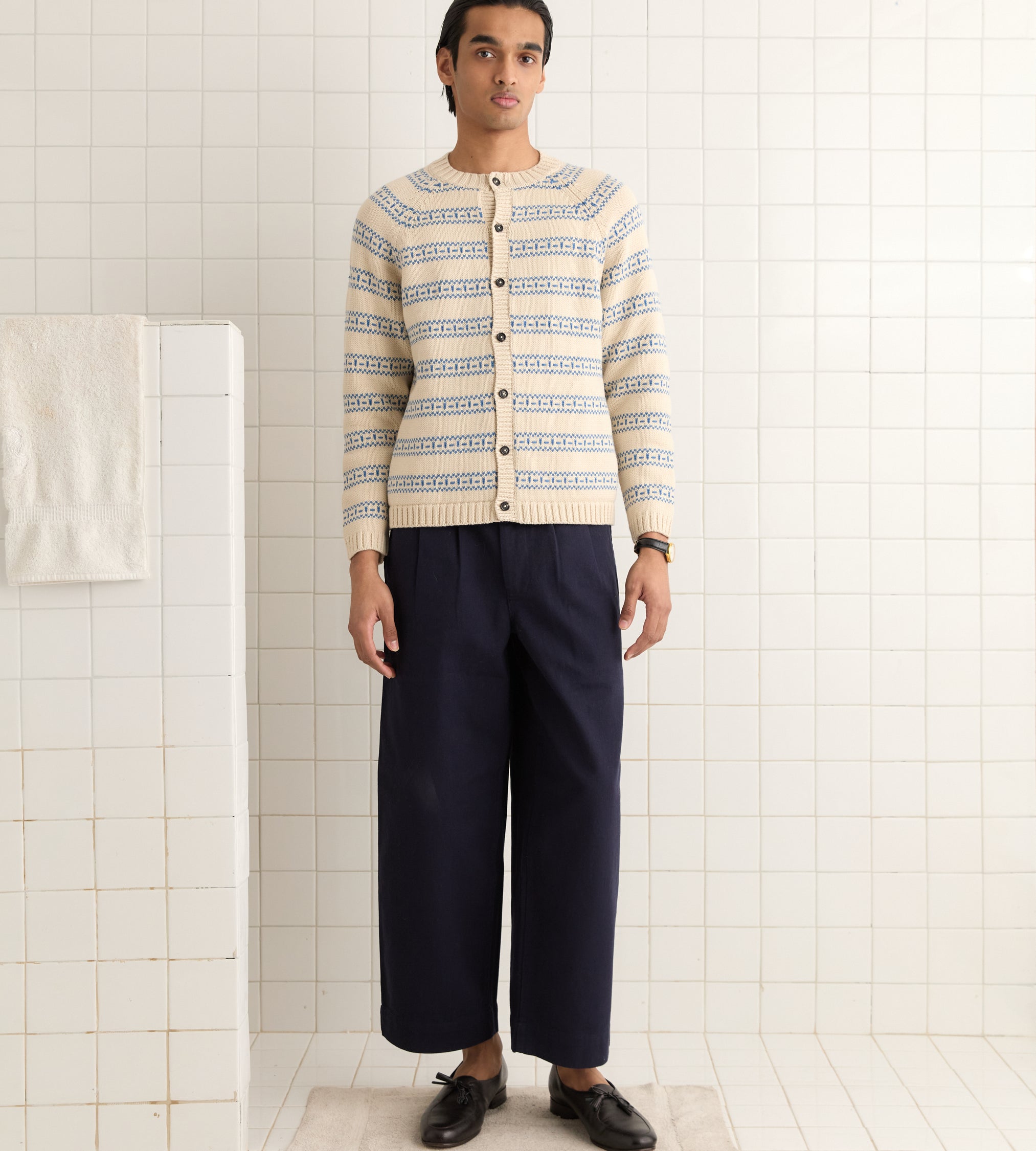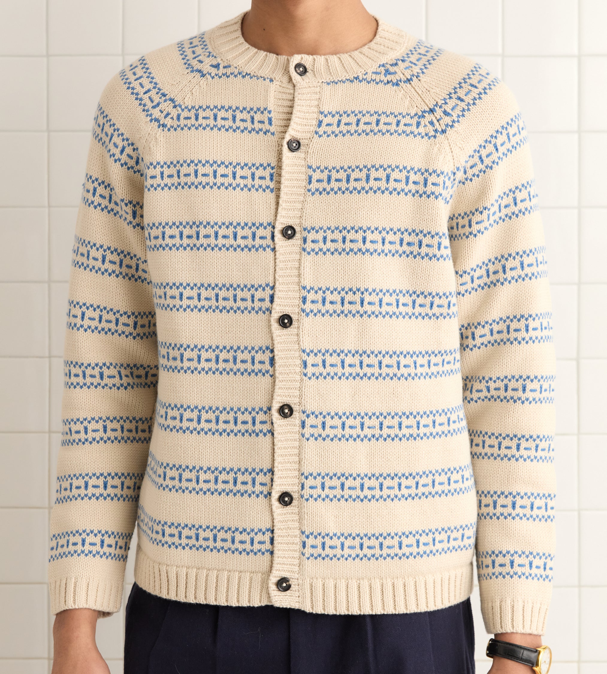BODE Men’s Ready To Wear Meandering Stripe Cardigan – Cream | Cream