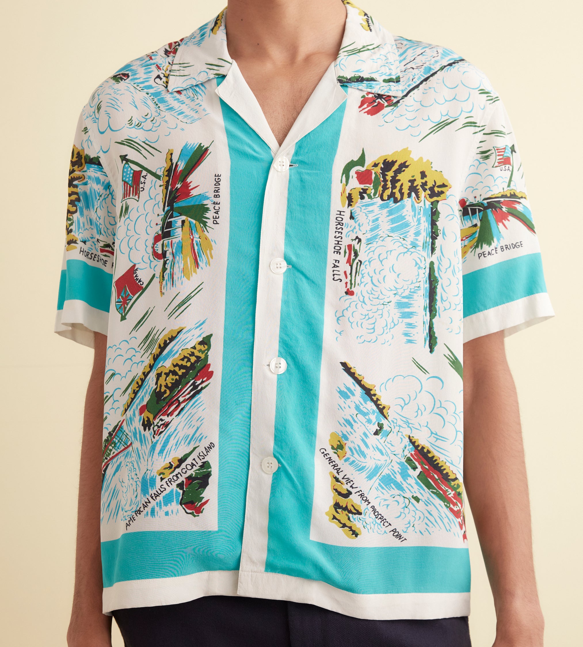 BODE Men’s Ready To Wear Niagara Souvenir Short Sleeve Shirt | White
