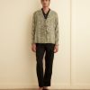 This shirt is inspired by a piano shawl from the early 20th century. Piano shawls became popular in Victorian England as home decorations, but by the 1930s, the name had come to refer to fringed silk shawls worn by women. The newer shawls were influenced both by Spanish and Chinese fashions and motifs.
