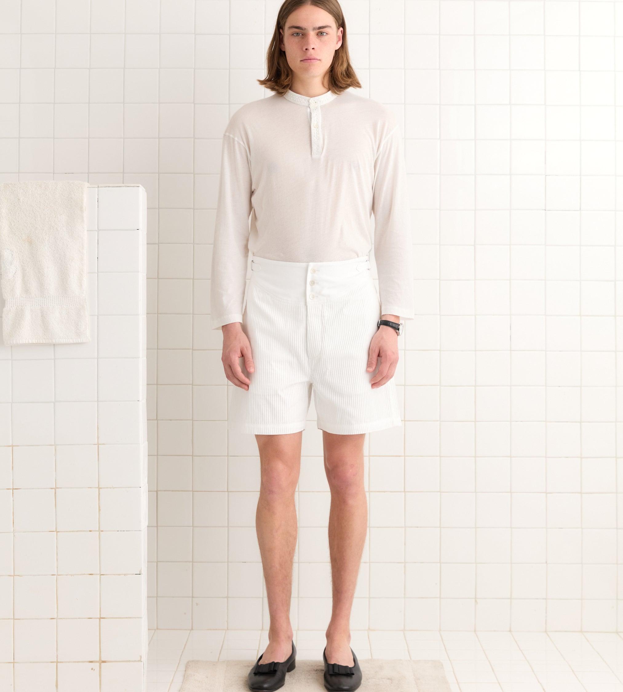 BODE Men’s Ready To Wear Piqué Plissé Cot Shorts | White