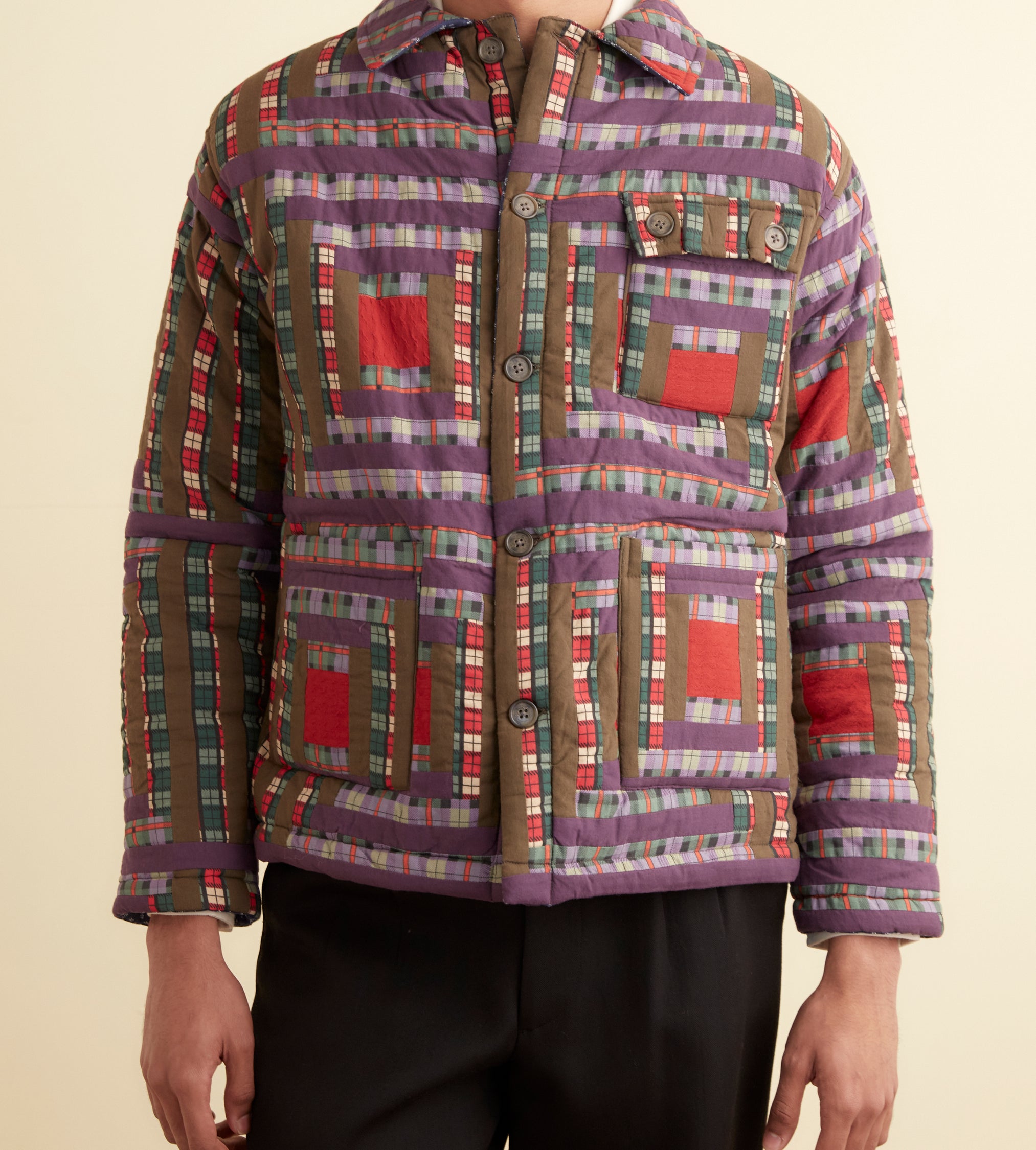 BODE Men’s Ready To Wear Plaid Log Cabin Quilt Jacket
