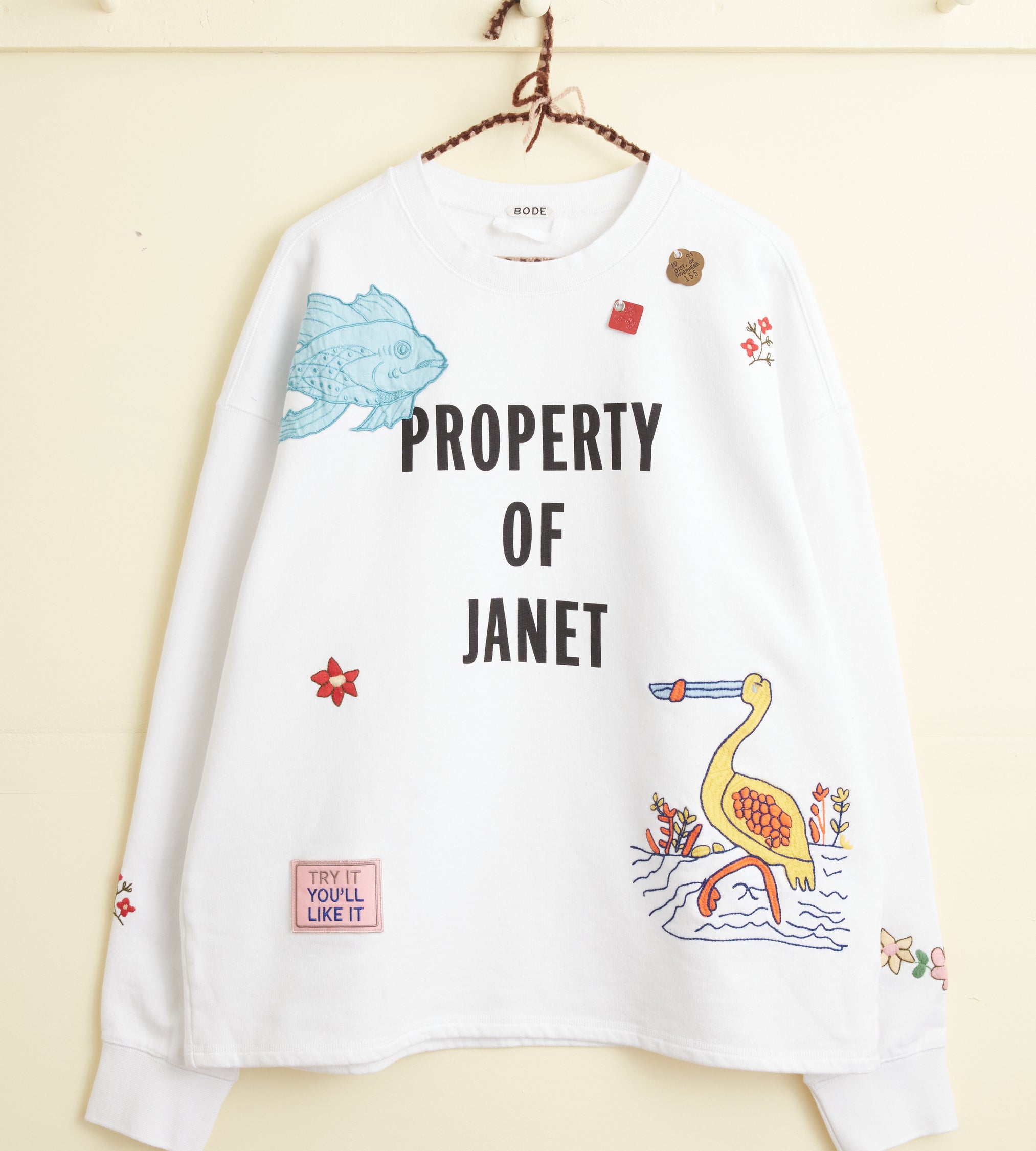 BODE Men’s Ready To Wear Property Of Janet Crewneck | White
