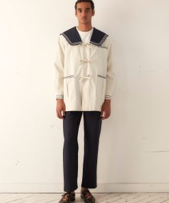This coat is inspired by women’s outerwear, circa 1960s. This style is an exact reproduction of a nautical-themed women’s coat from an in-house label of a well-known American department store.