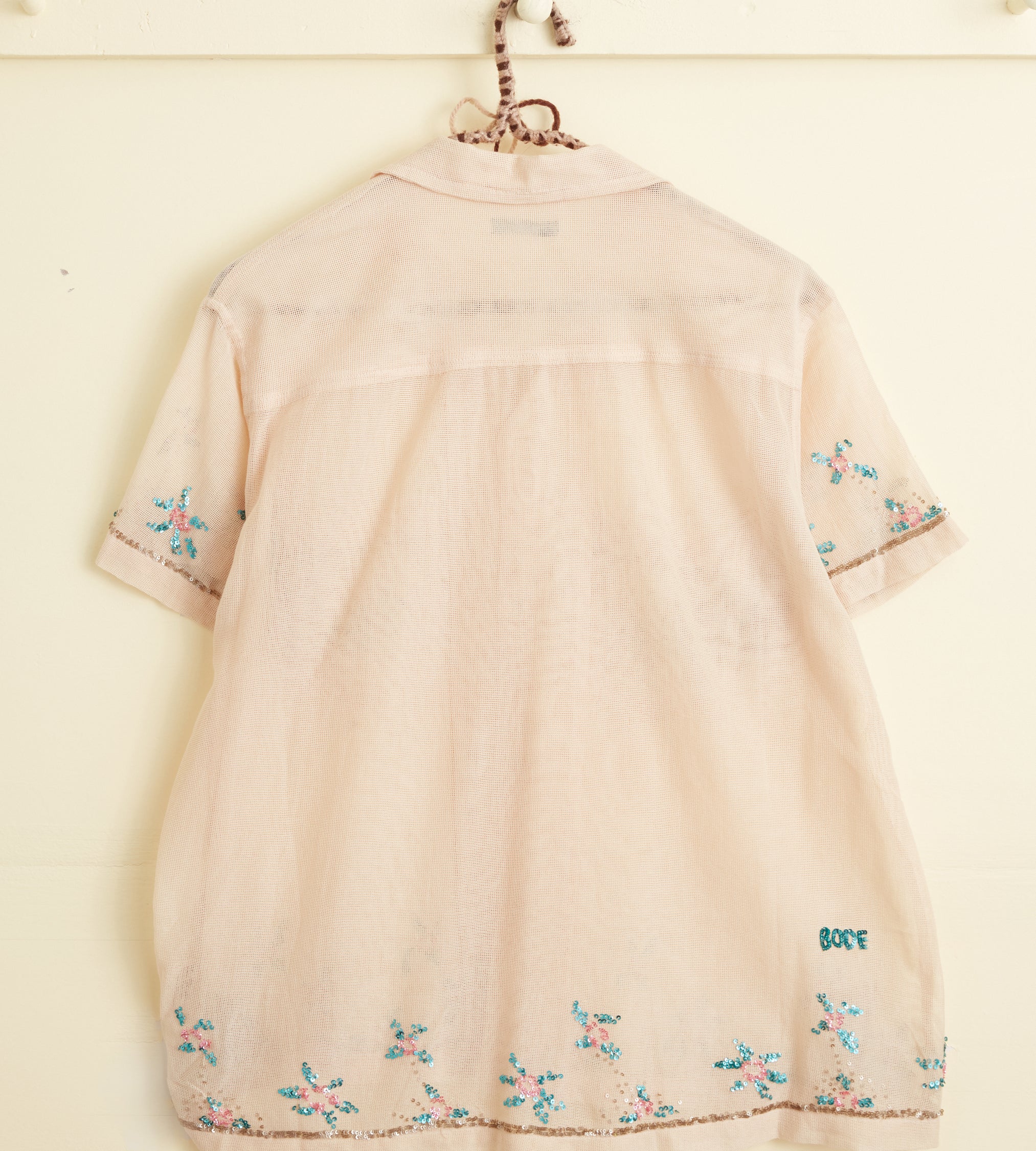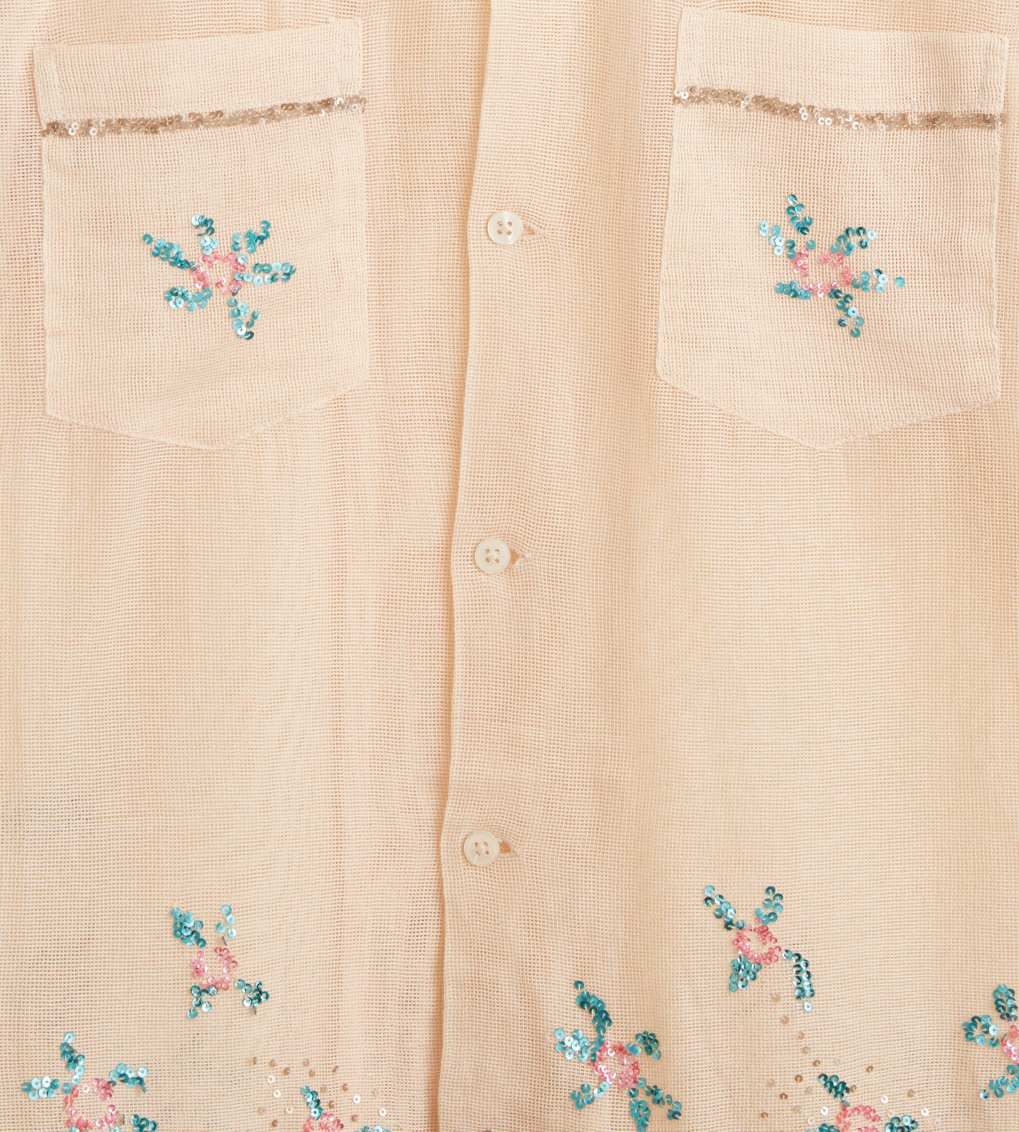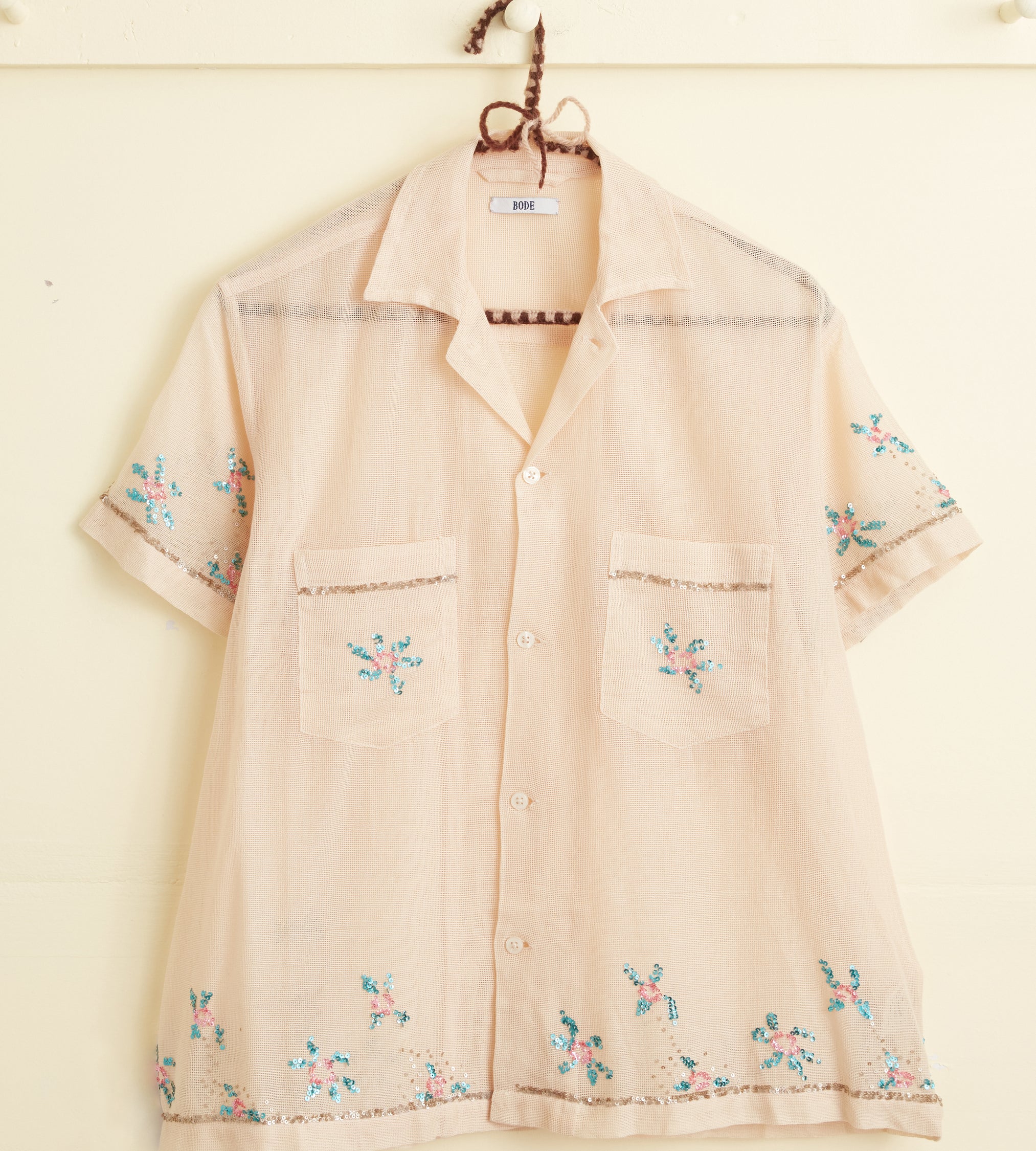 BODE Men’s Ready To Wear Sequined Floral Net Short Sleeve Shirt