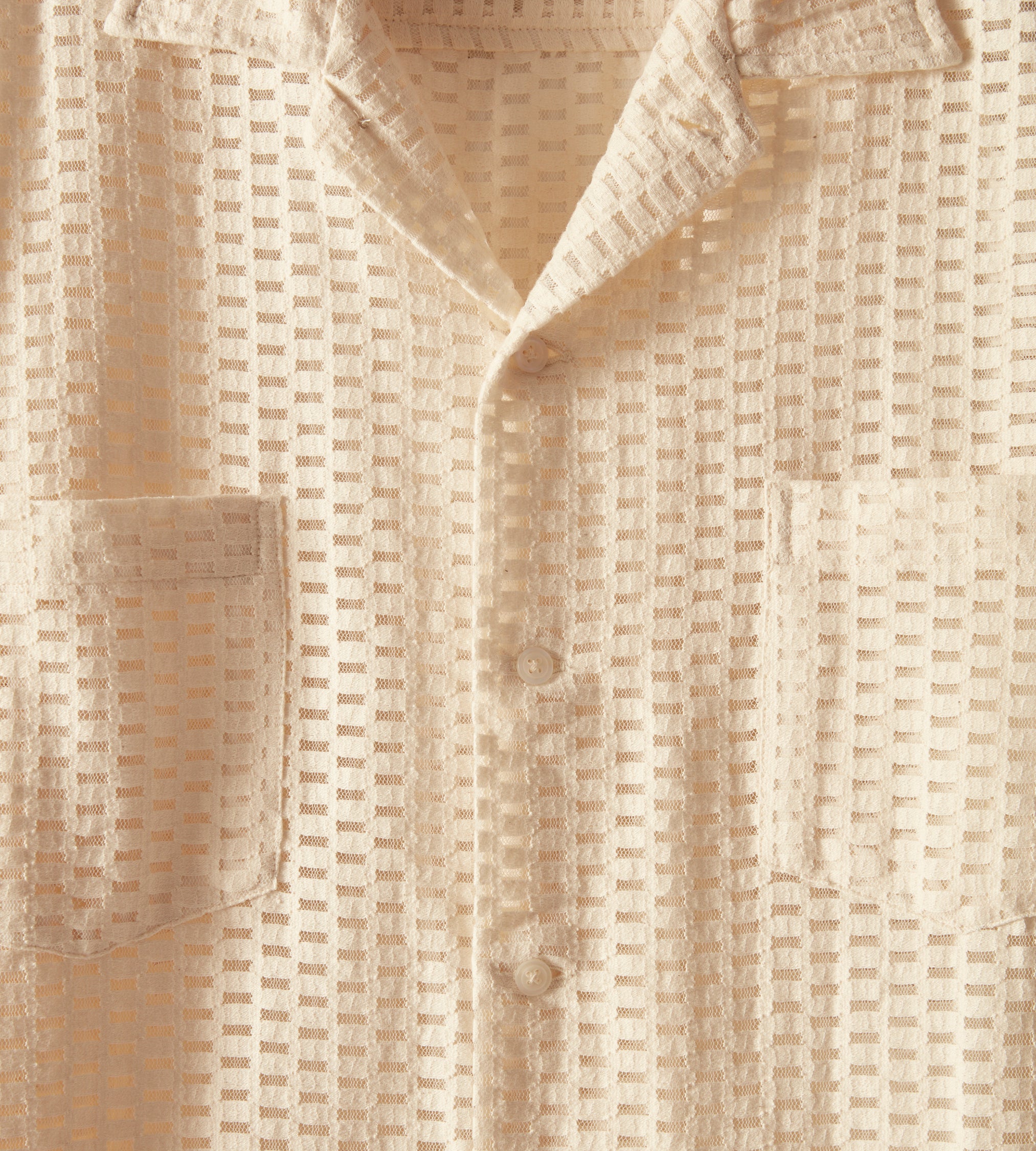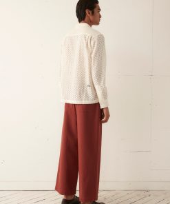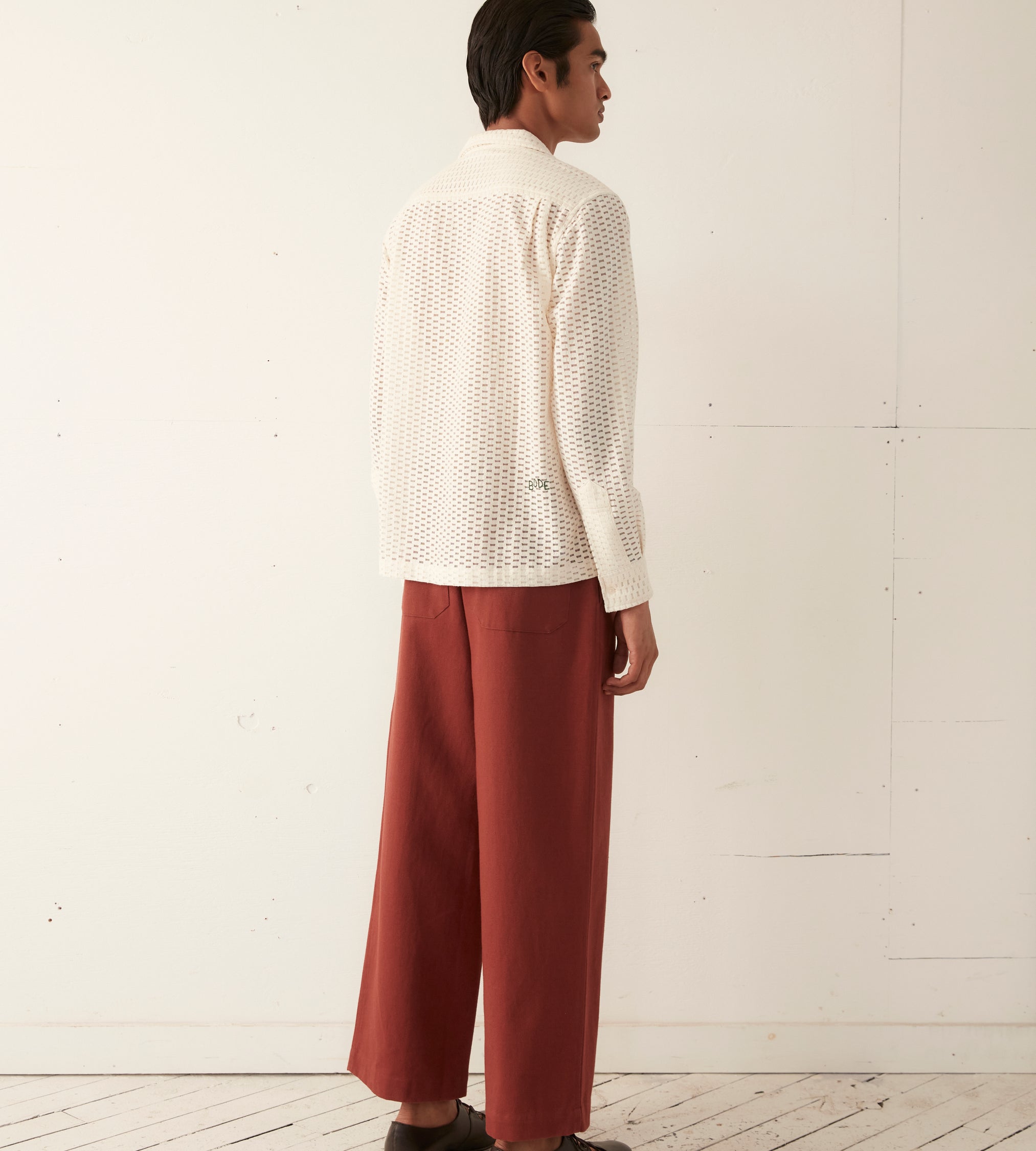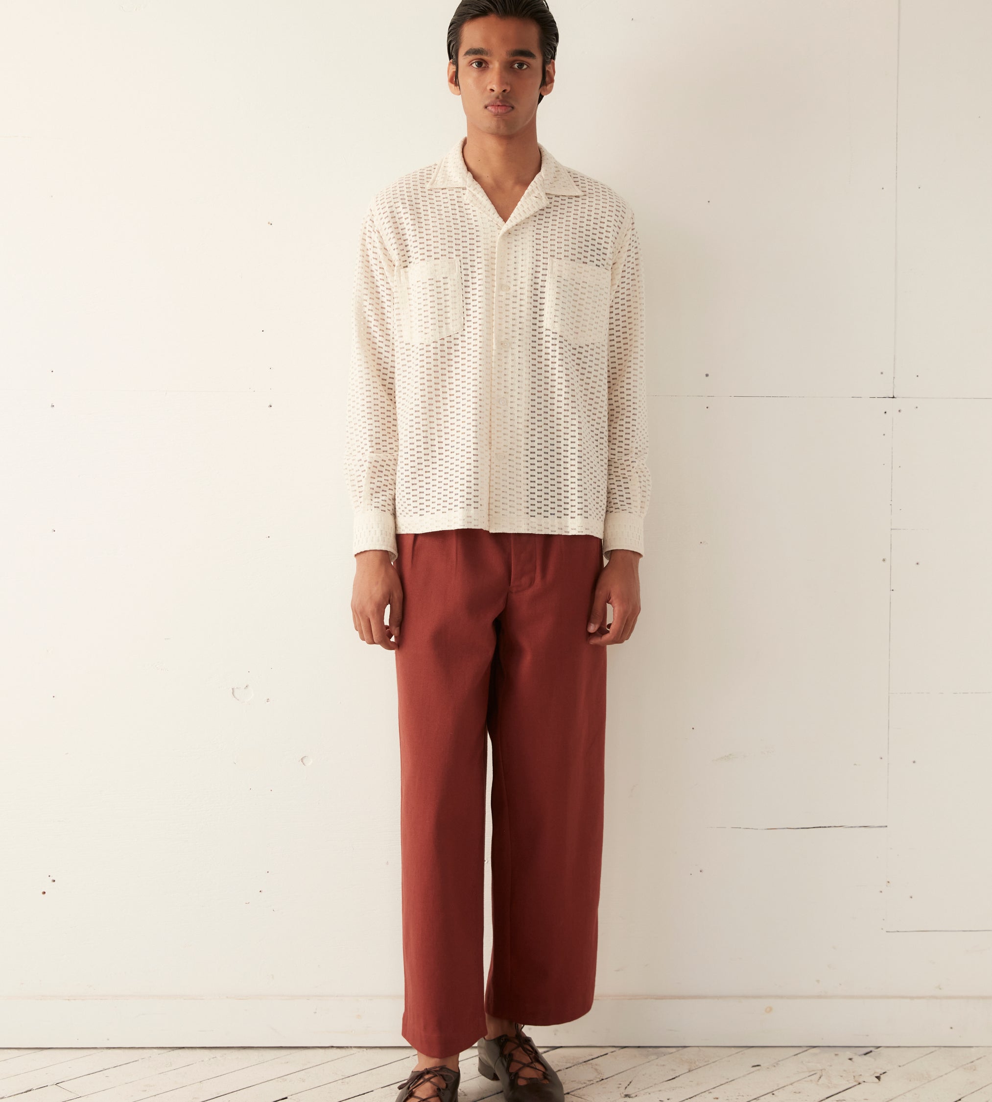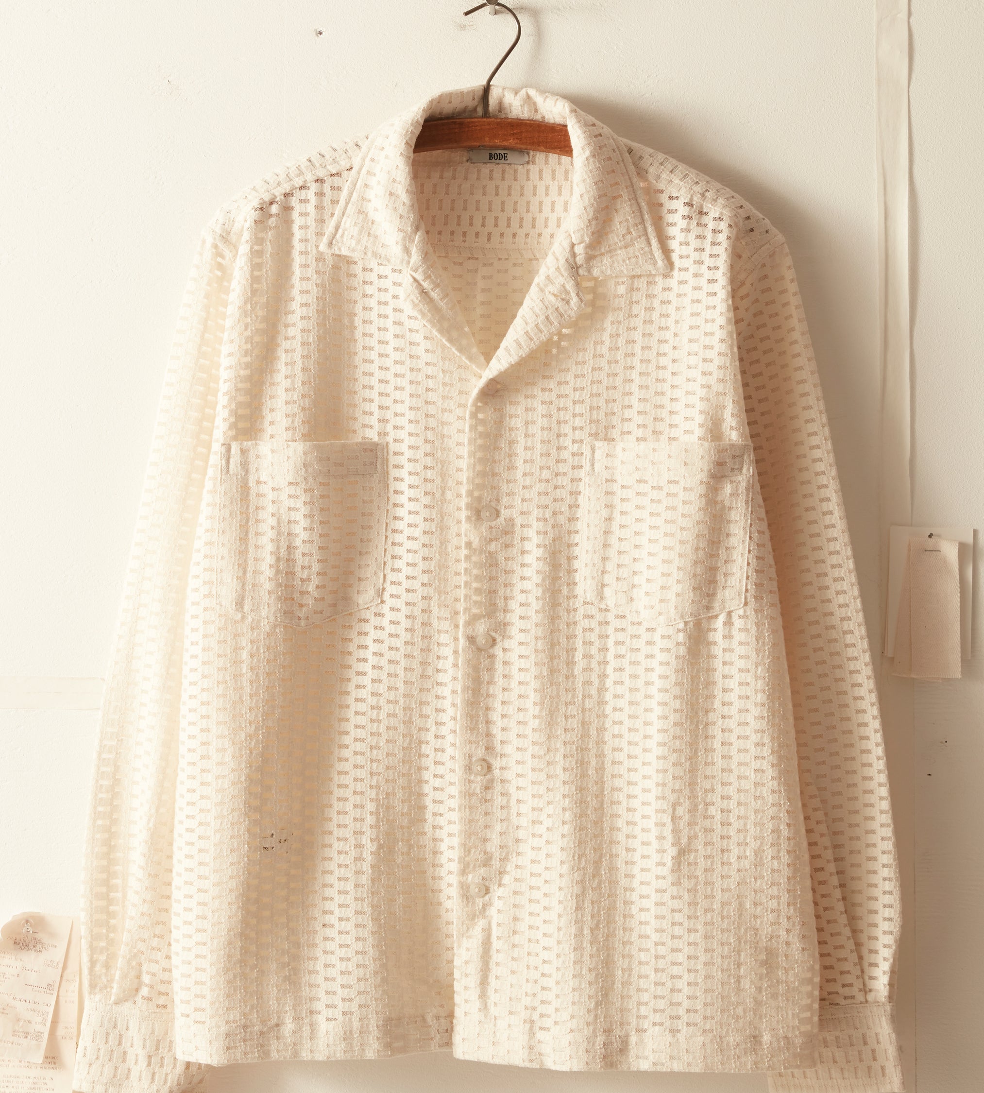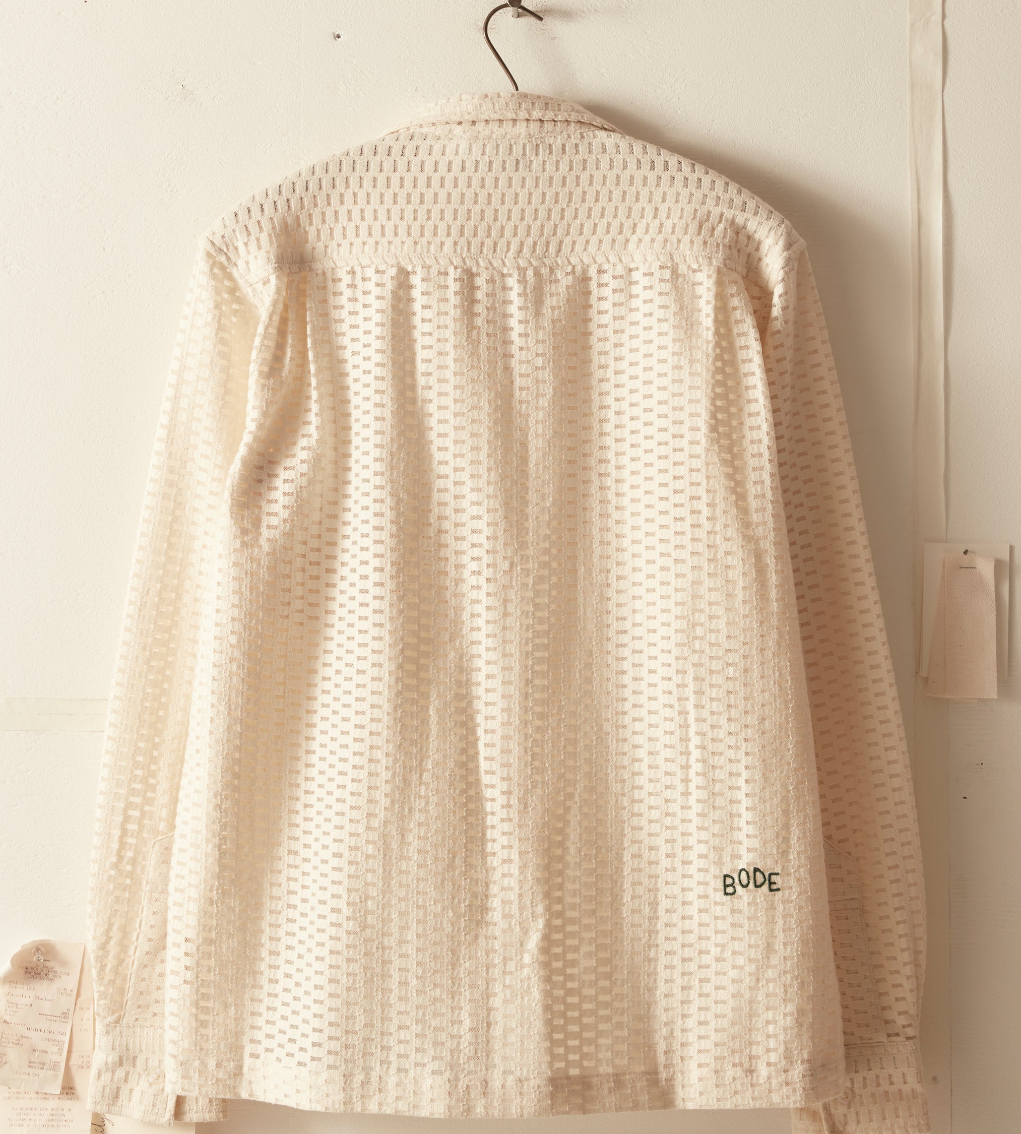 BODE Men’s Ready To Wear Sheer Brick Lace Long Sleeve Shirt