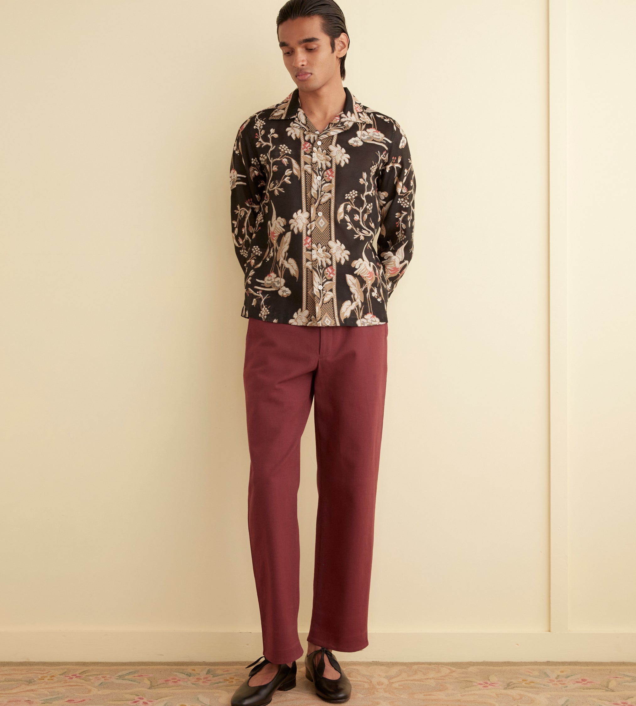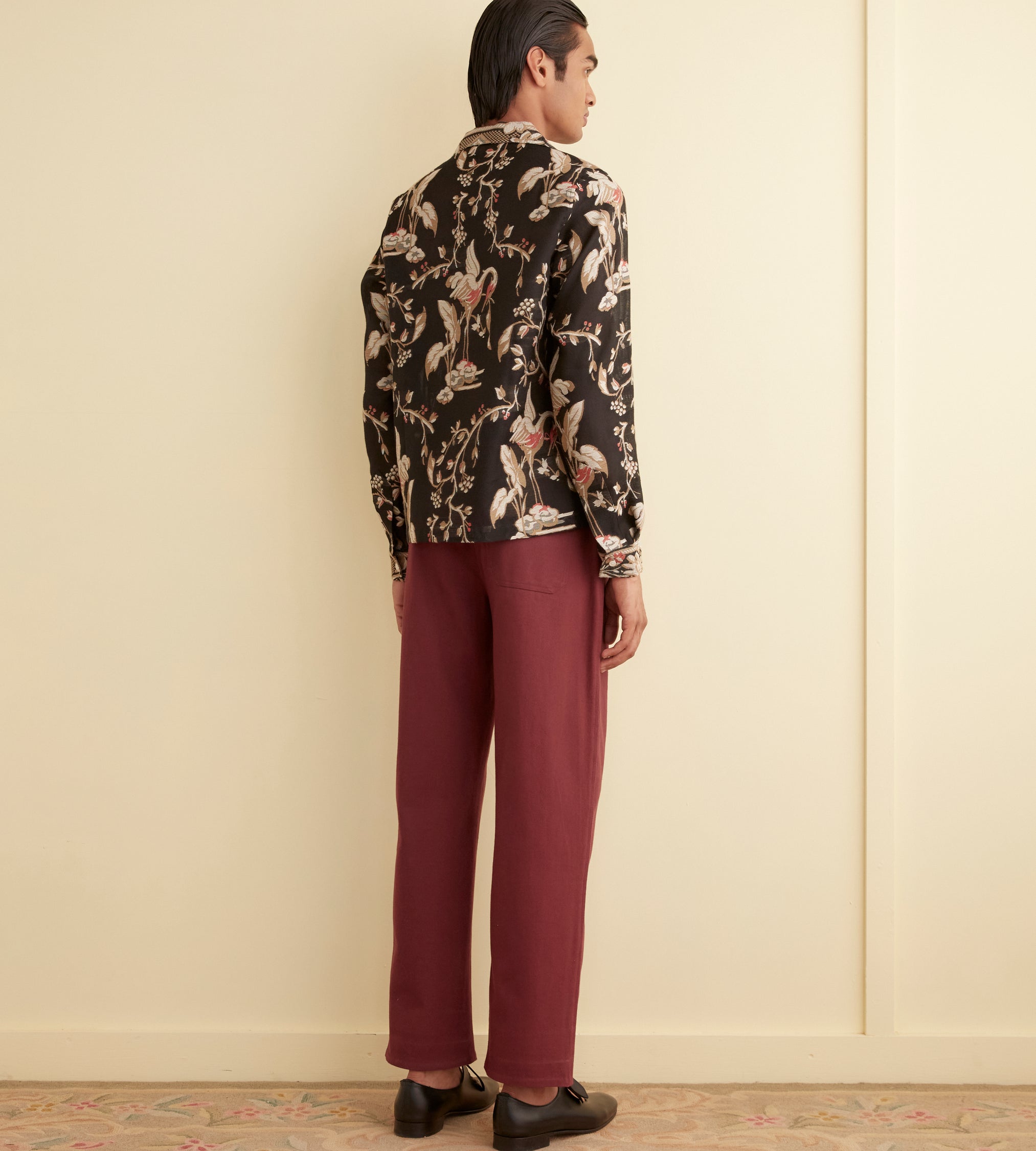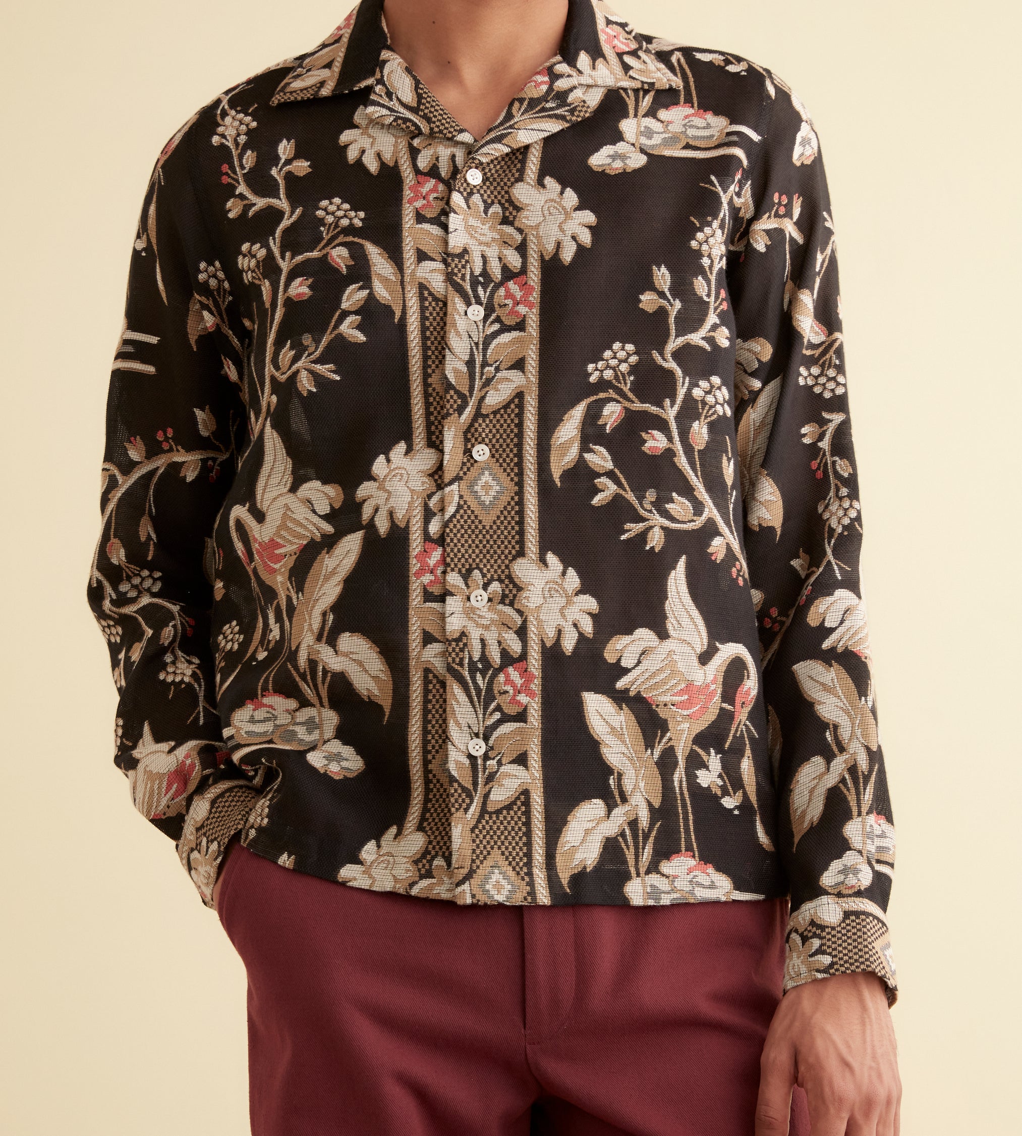 BODE Men’s Ready To Wear Sheer Cranes Long Sleeve Shirt | Black