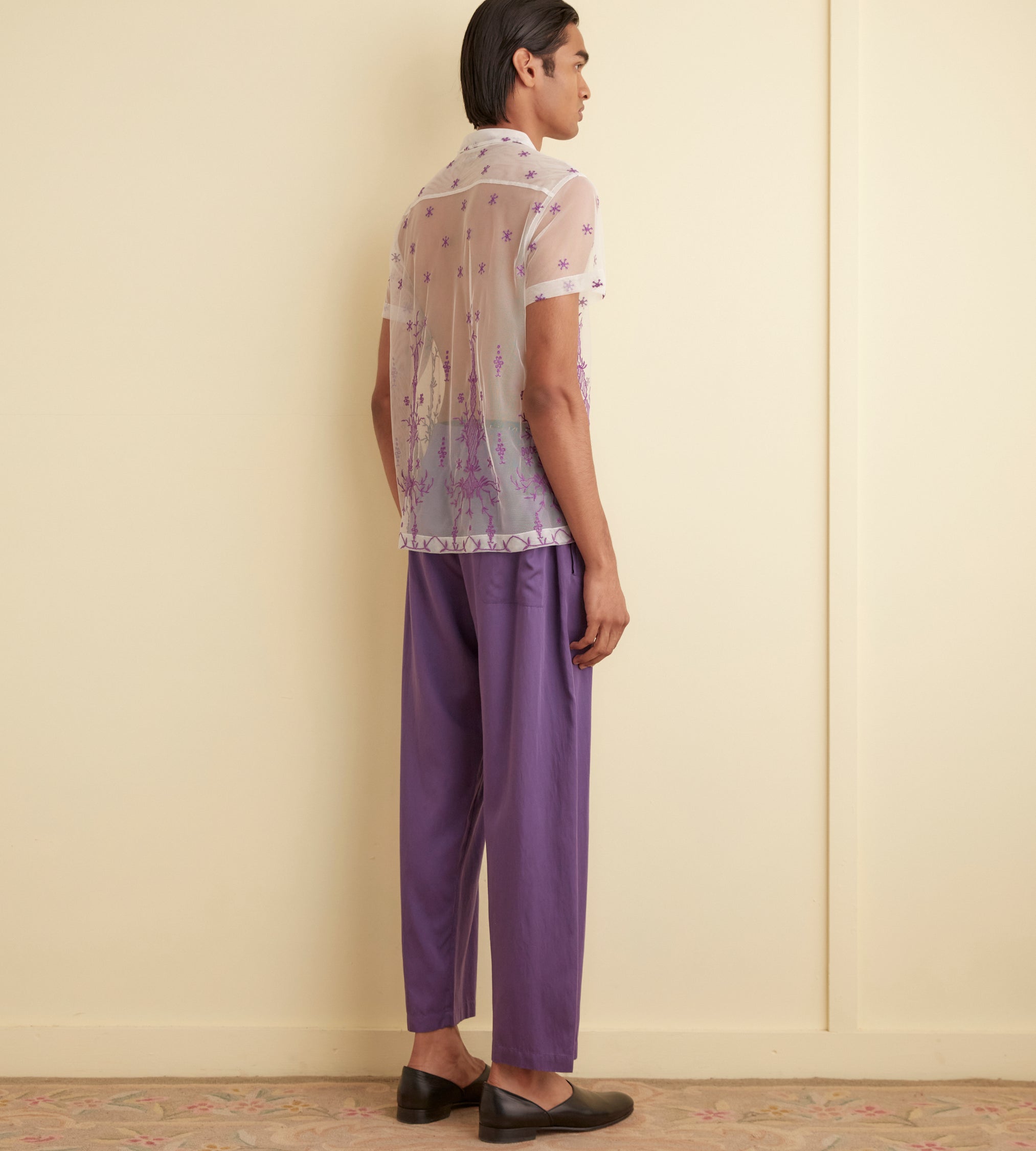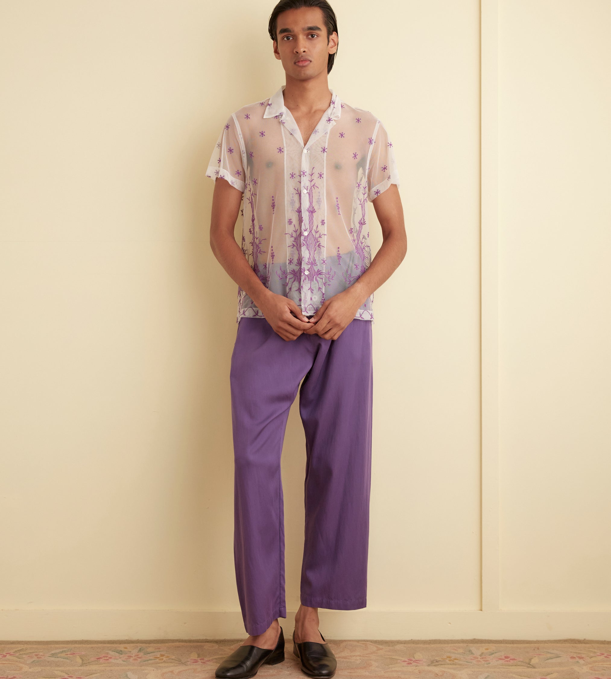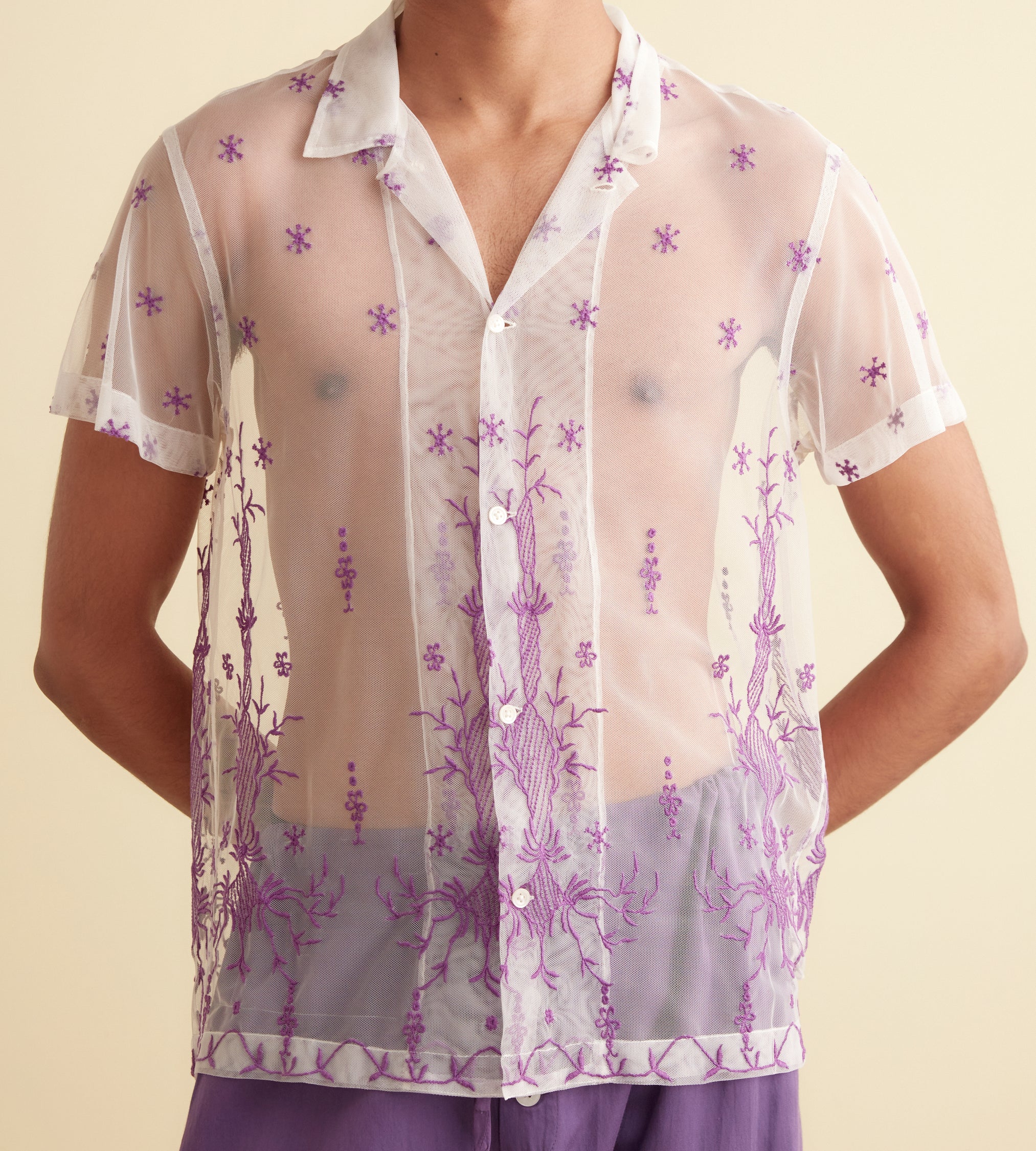 BODE Men’s Ready To Wear Sheer Lavandula Short Sleeve Shirt | White