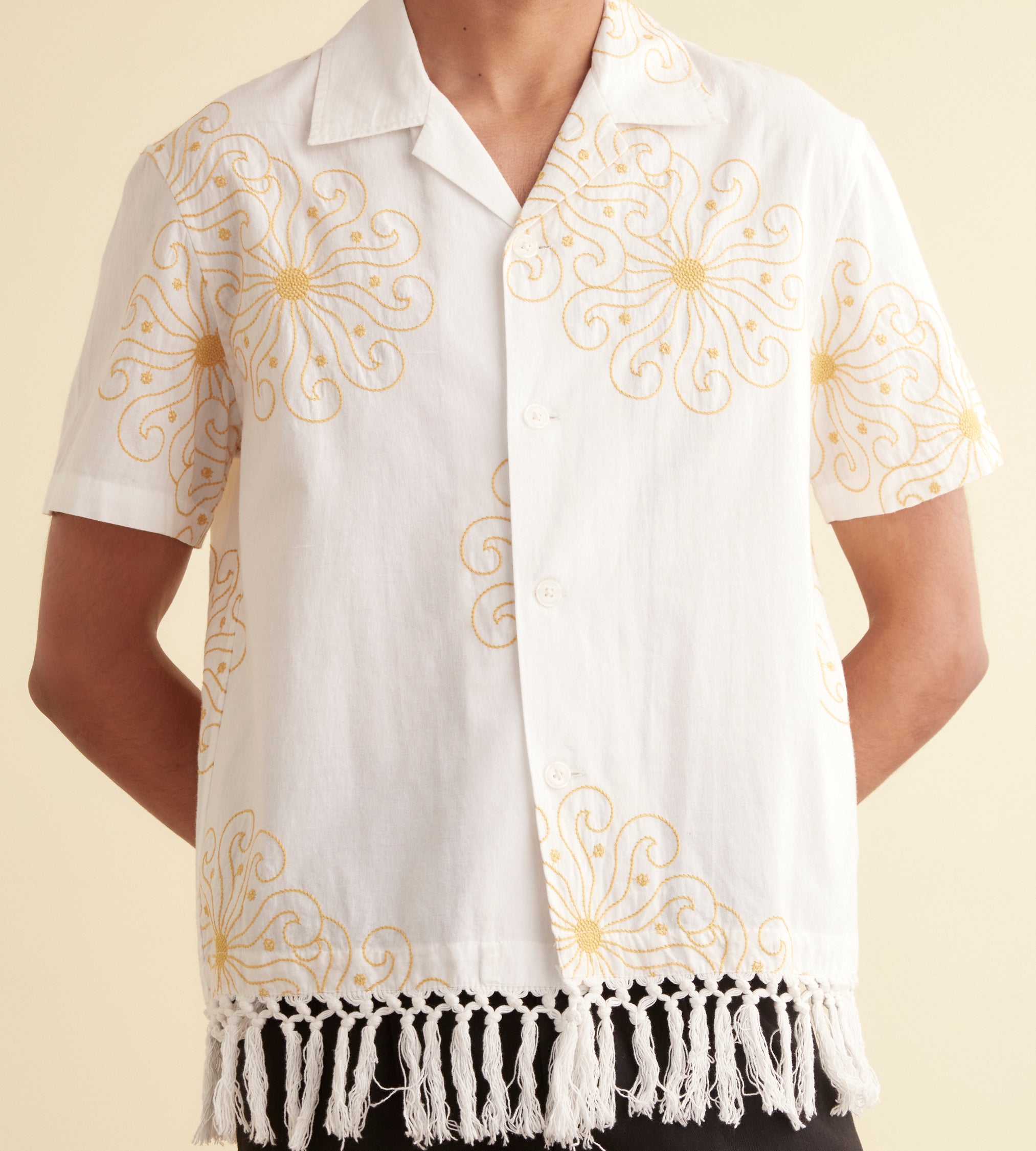 BODE Men’s Ready To Wear Soleil Fringe Short Sleeve Shirt
