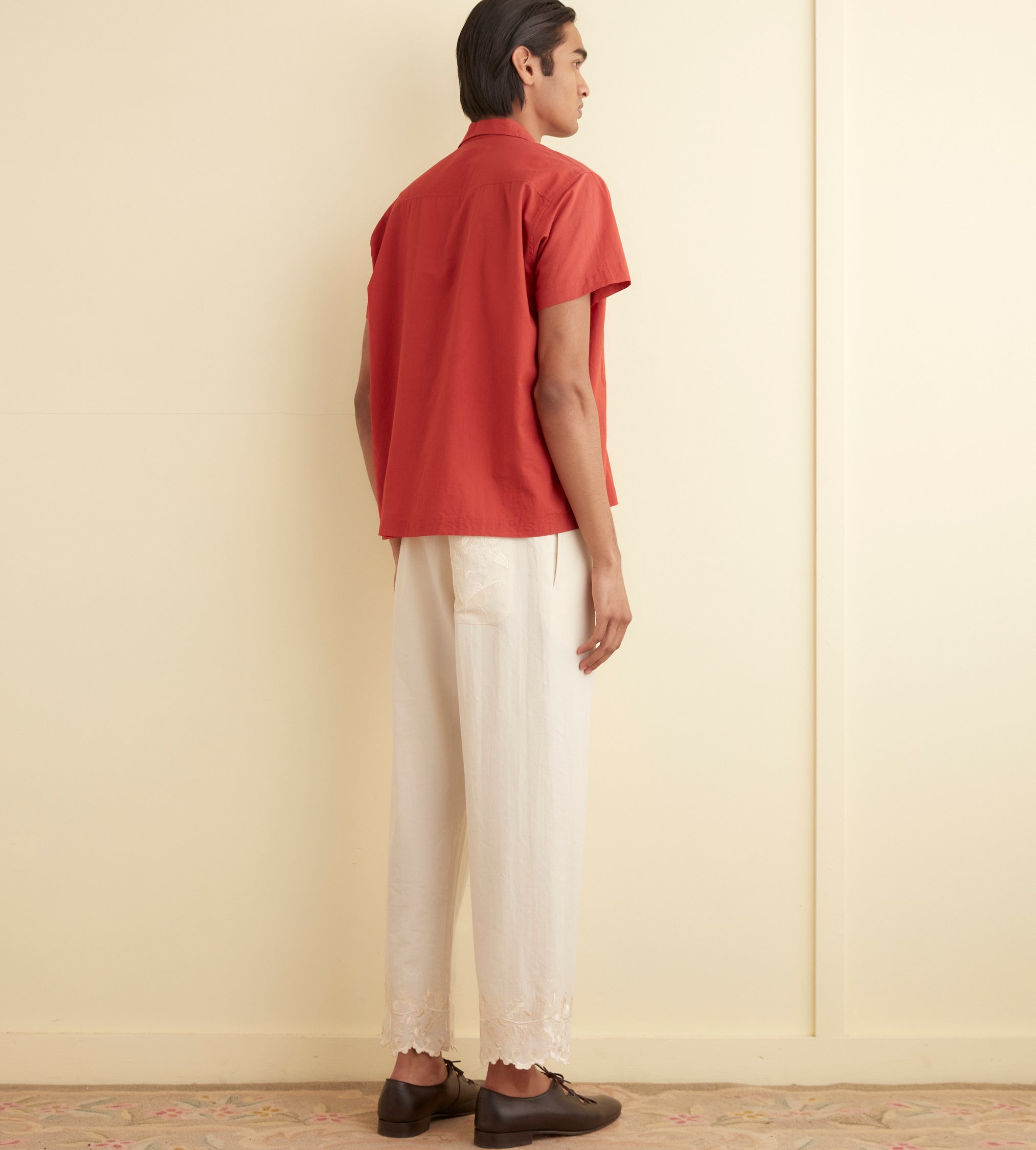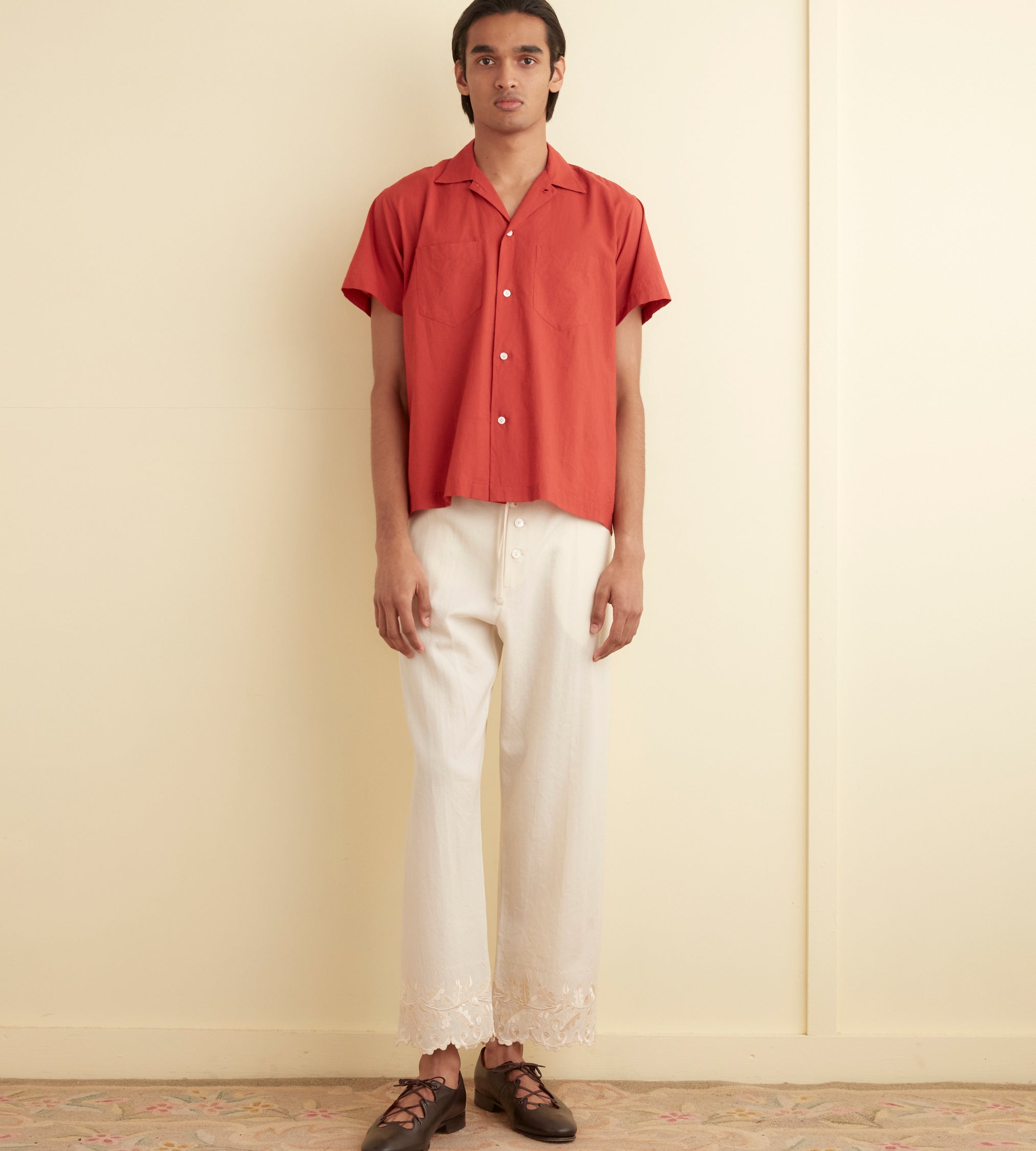 BODE Men’s Ready To Wear Voile Double Pocket Short Sleeve Shirt – Merlot