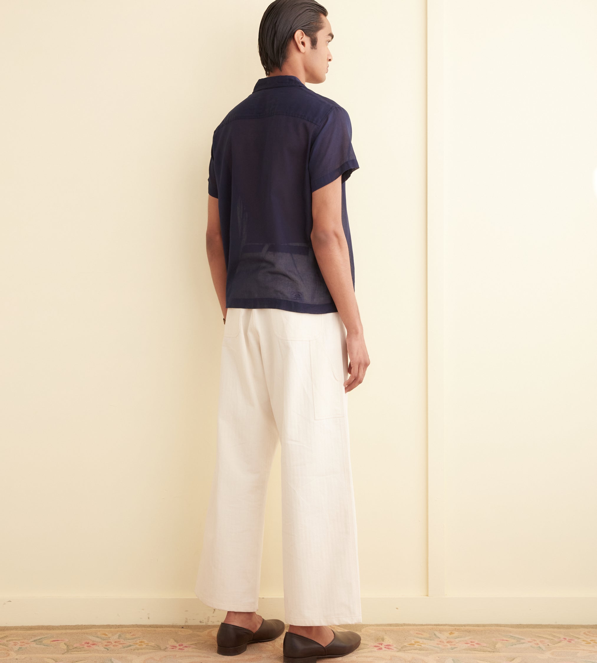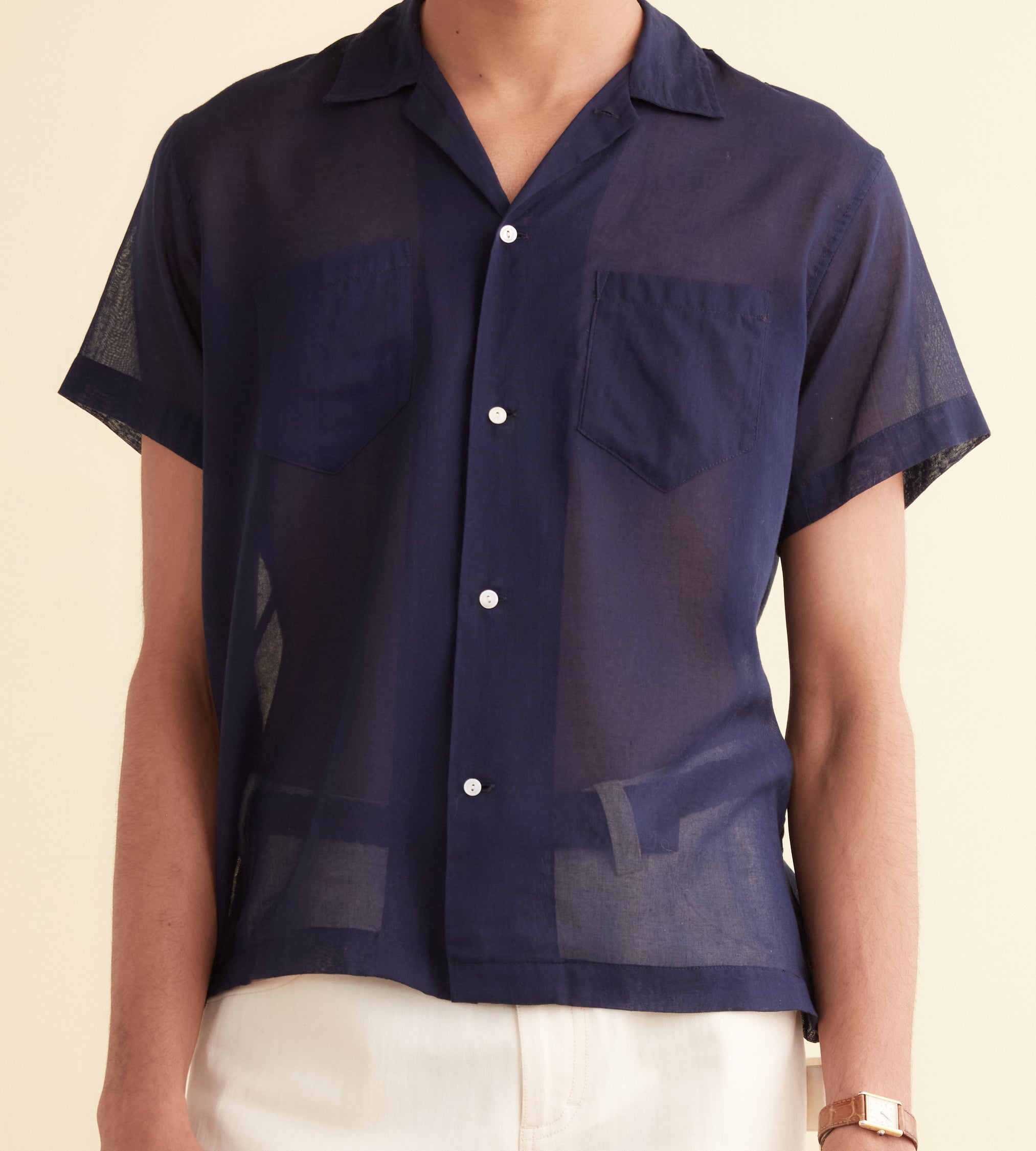 BODE Men’s Ready To Wear Voile Short Sleeve Shirt – Navy | Navy